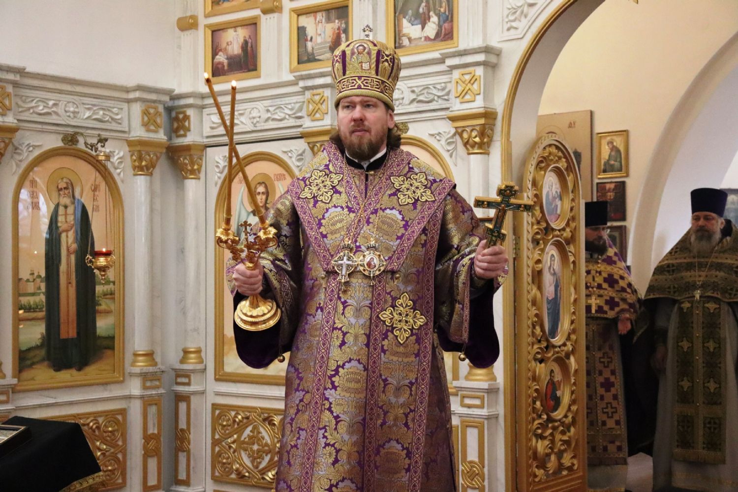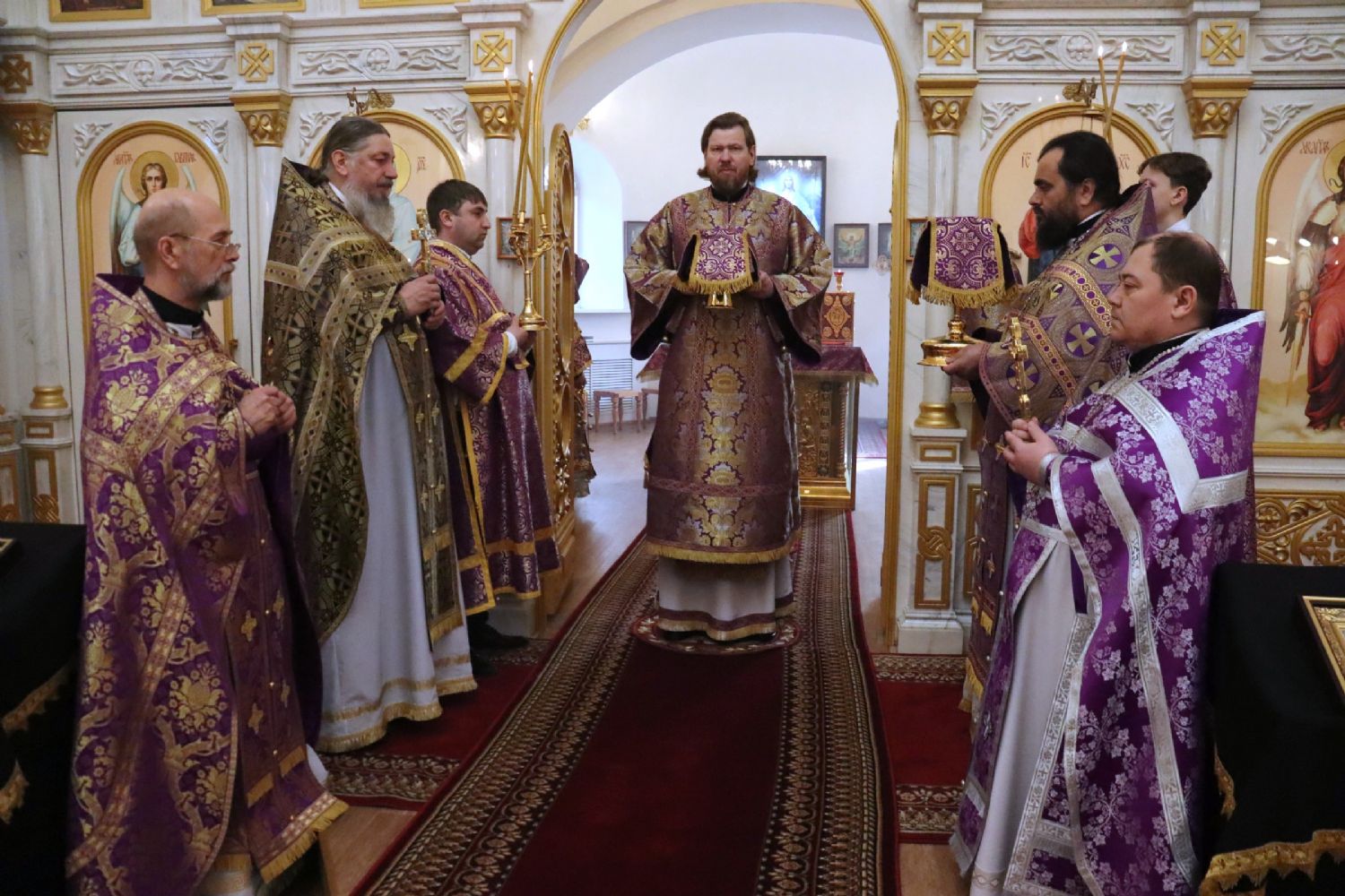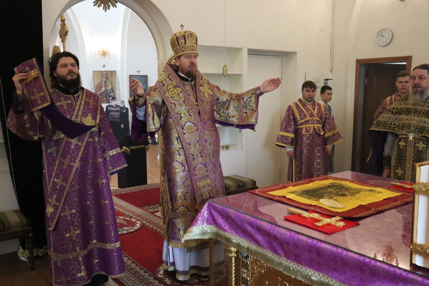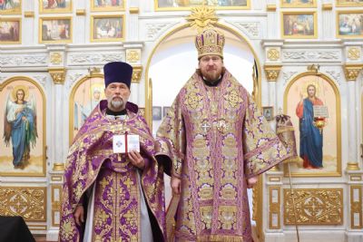 Его Высокопреосвященству сослужили благочинный III округа Владивостокской епархии протоиерей Евгений Маляр; настоятель храма протоиерей Сергий Бирюк; благочинный I Владивостокского благочиния, исполняющий обязанности благочинного II Владивостокского благочиния протоиерей Сергий Шуталев; заместитель благочинного I Владивостокского благочиния, ответственный за организацию архиерейских богослужений протоиерей Димитрий Федорин; иерей Алексий Овчинников.