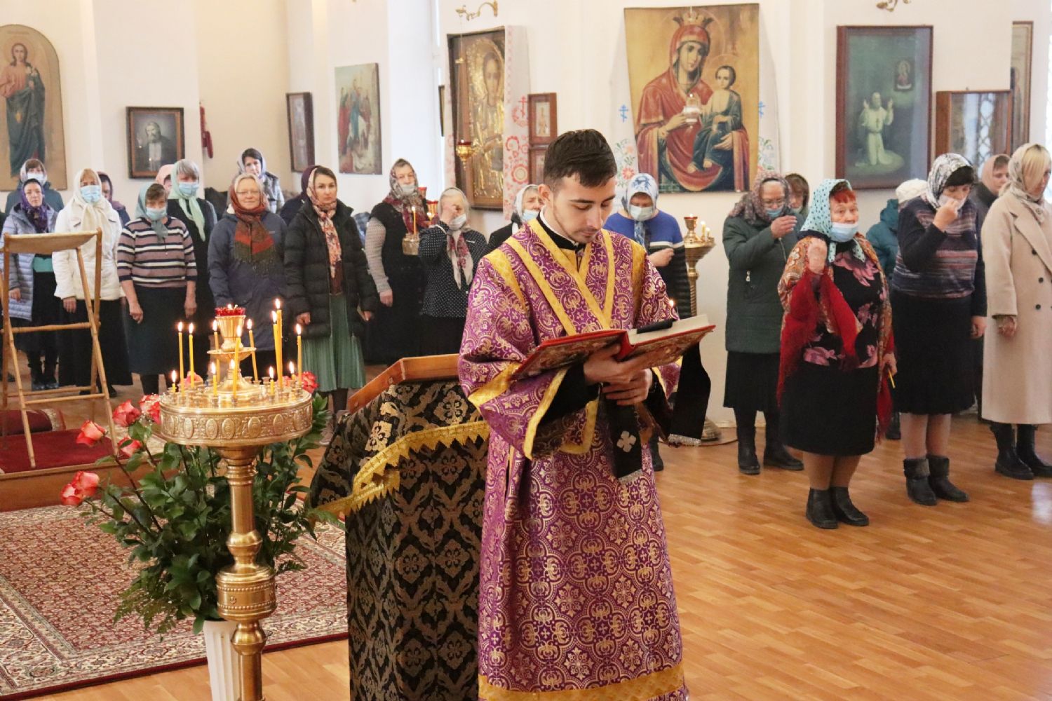 Богослужебные песнопения исполнил малый состав Митрополичьего хора Покровского собора под управлением регента Елены Левада и хор храма под управлением регента Людмилы Калининой.
