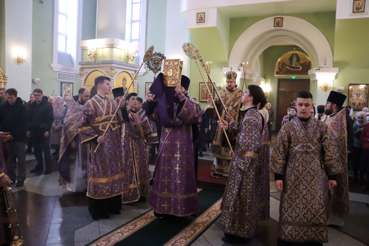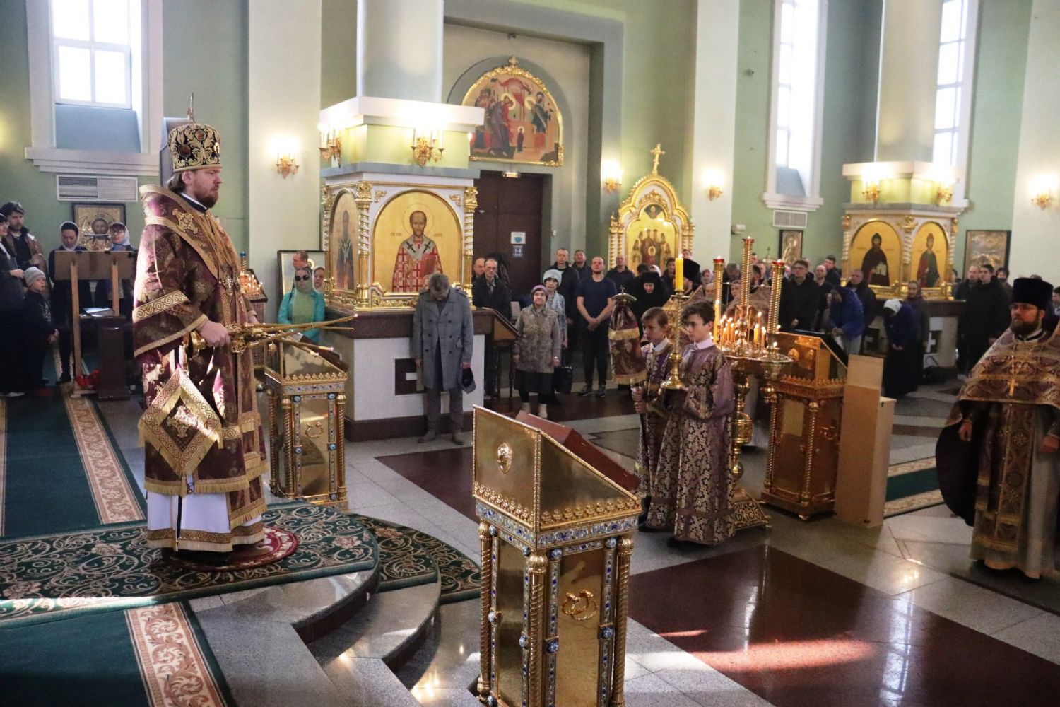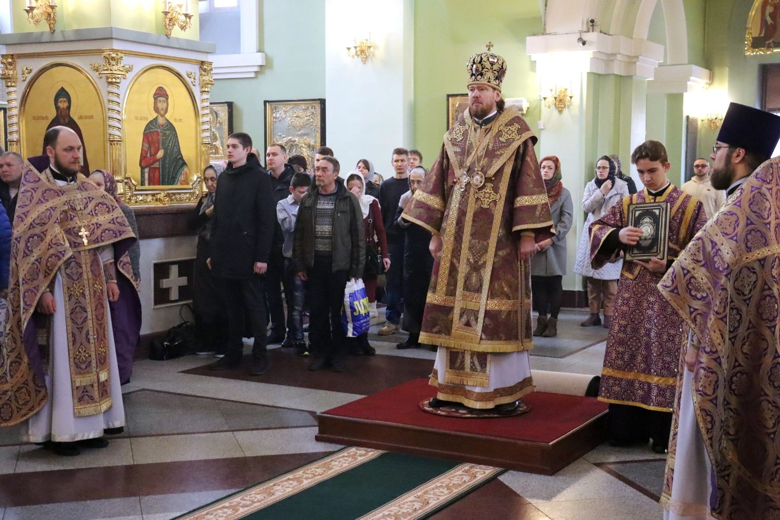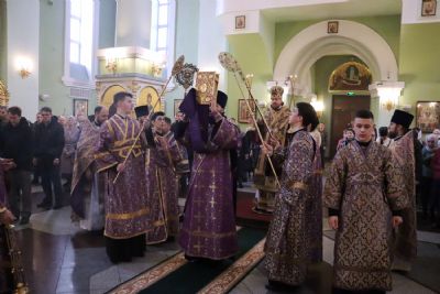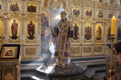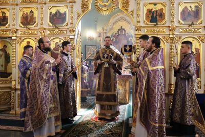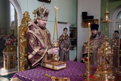 Его Высокопреосвященству сослужили: ключарь Покровского собора иерей Владимир Плотников, иерей Максим Точуков, иерей Дионисий Ищенко.