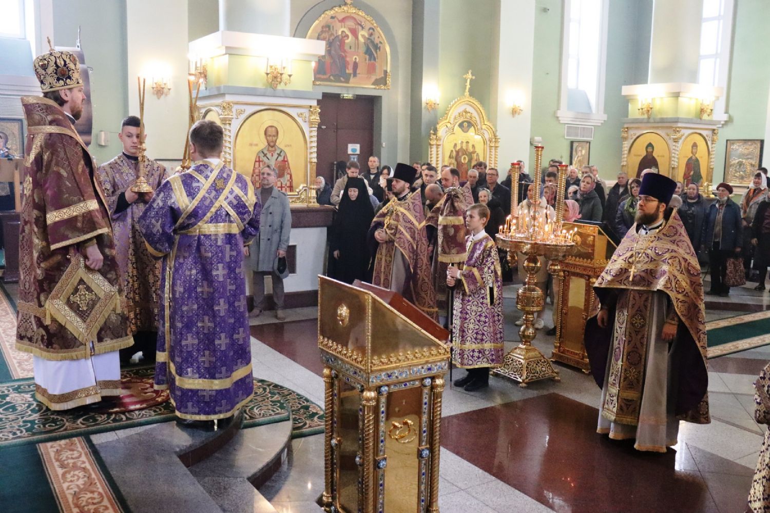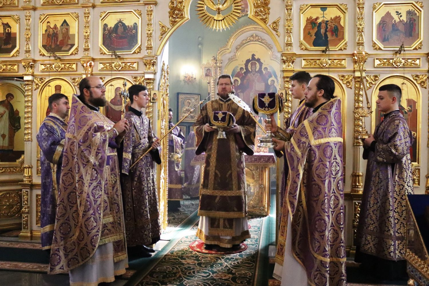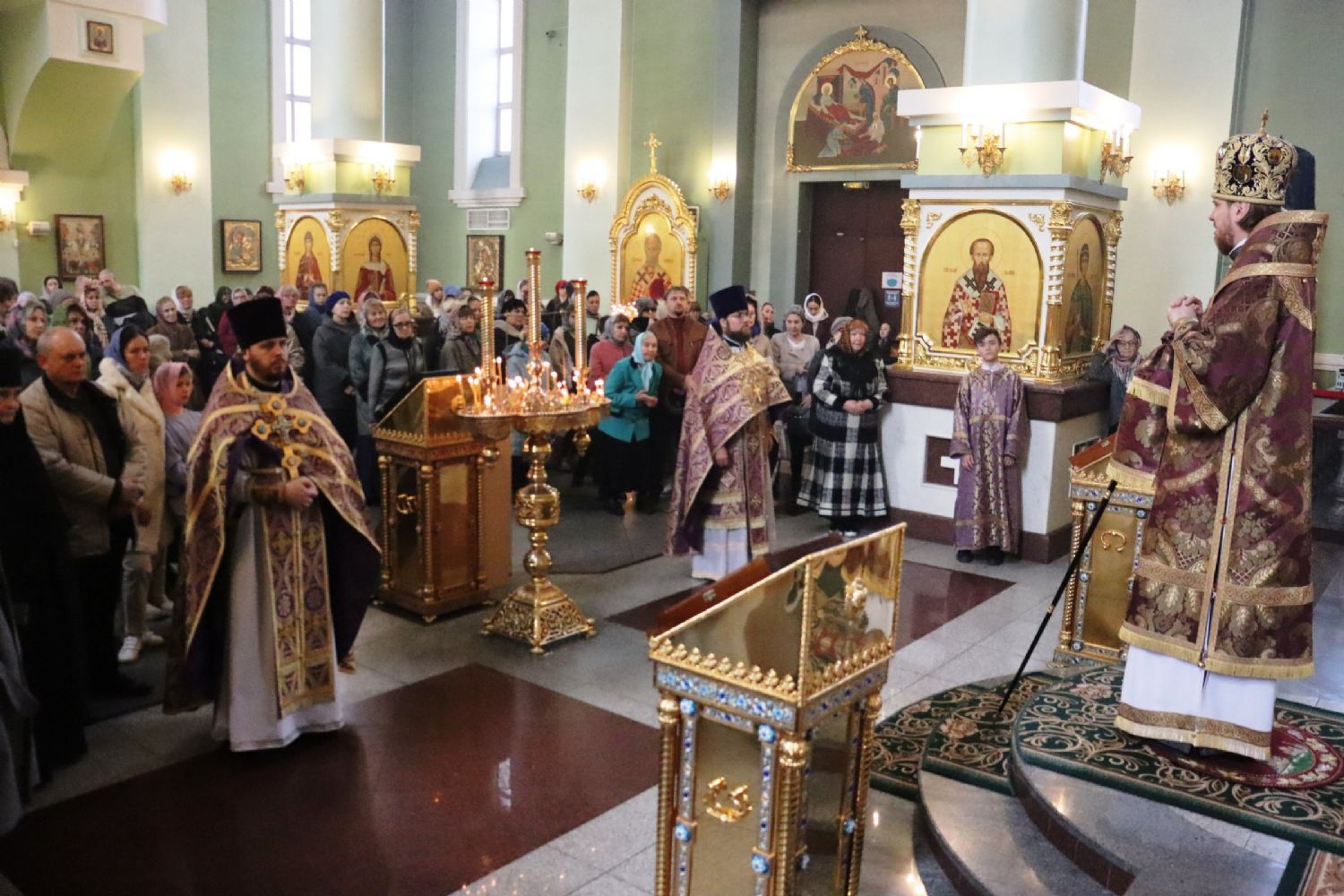 Его Высокопреосвященству сослужили: ключарь Покровского собора иерей Владимир Плотников, иерей Максим Точуков, иерей Дионисий Ищенко.
