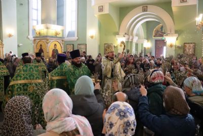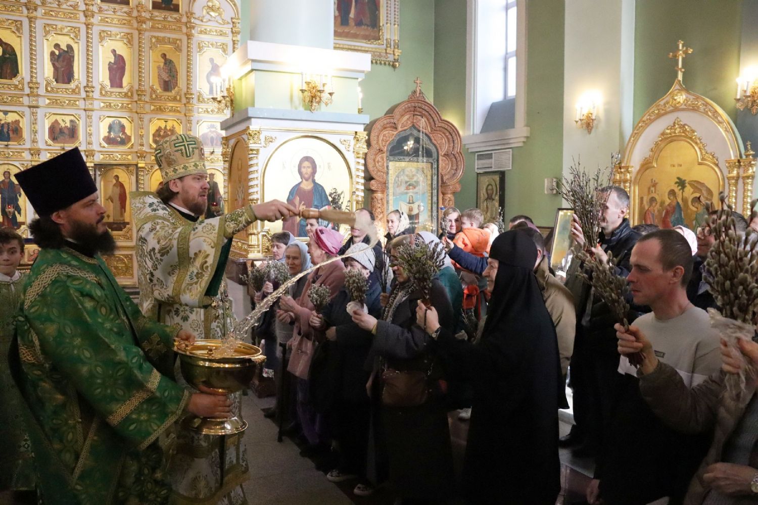 После чтения Святого Евангелия владыка Владимир совершил чин освящения вербных ветвей (ваий), затем было совершено помазание верующих освященным елеем.