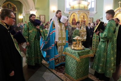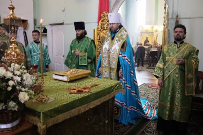 Его Высокопреосвященству сослужили: ключарь Покровского собора иерей Владимир Плотников, игумен Антоний (Каменчук), протоиерей Игорь Шевчук, иерей Максим Точуков, иерей Олег Селезнёв, иерей Дионисий Ищенко.