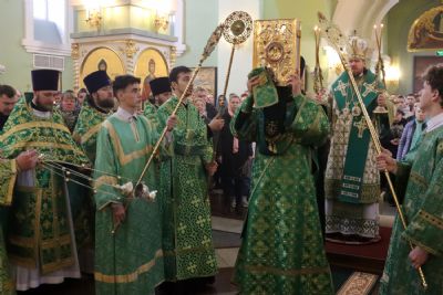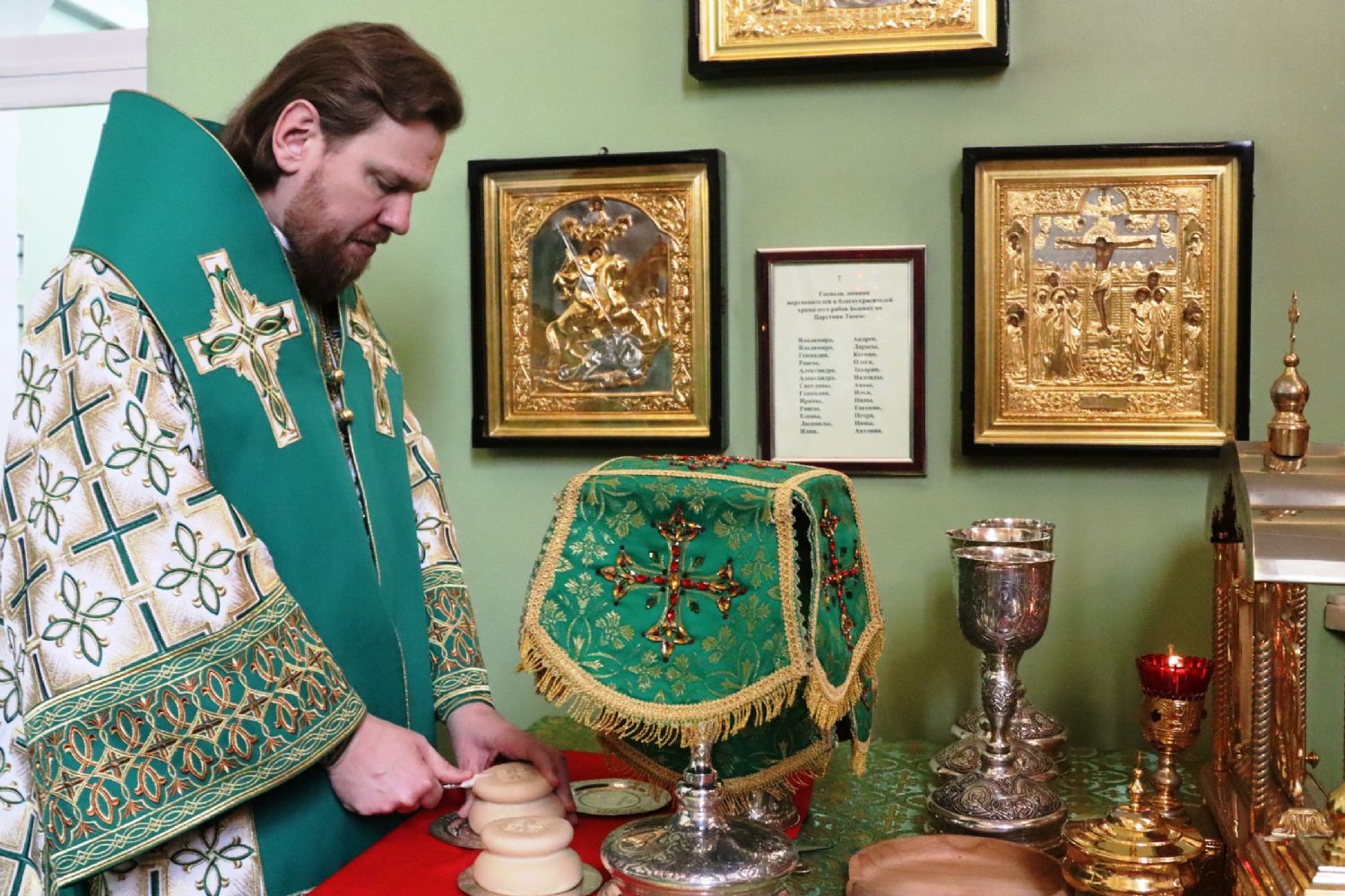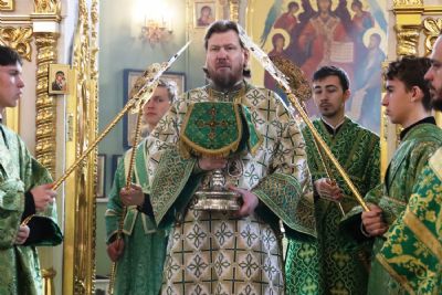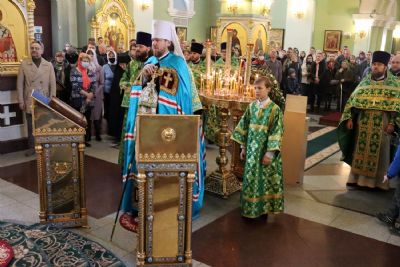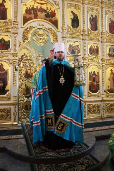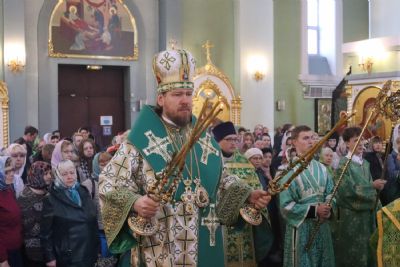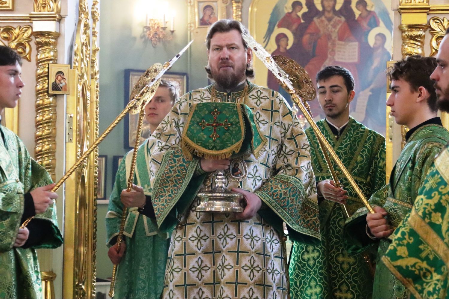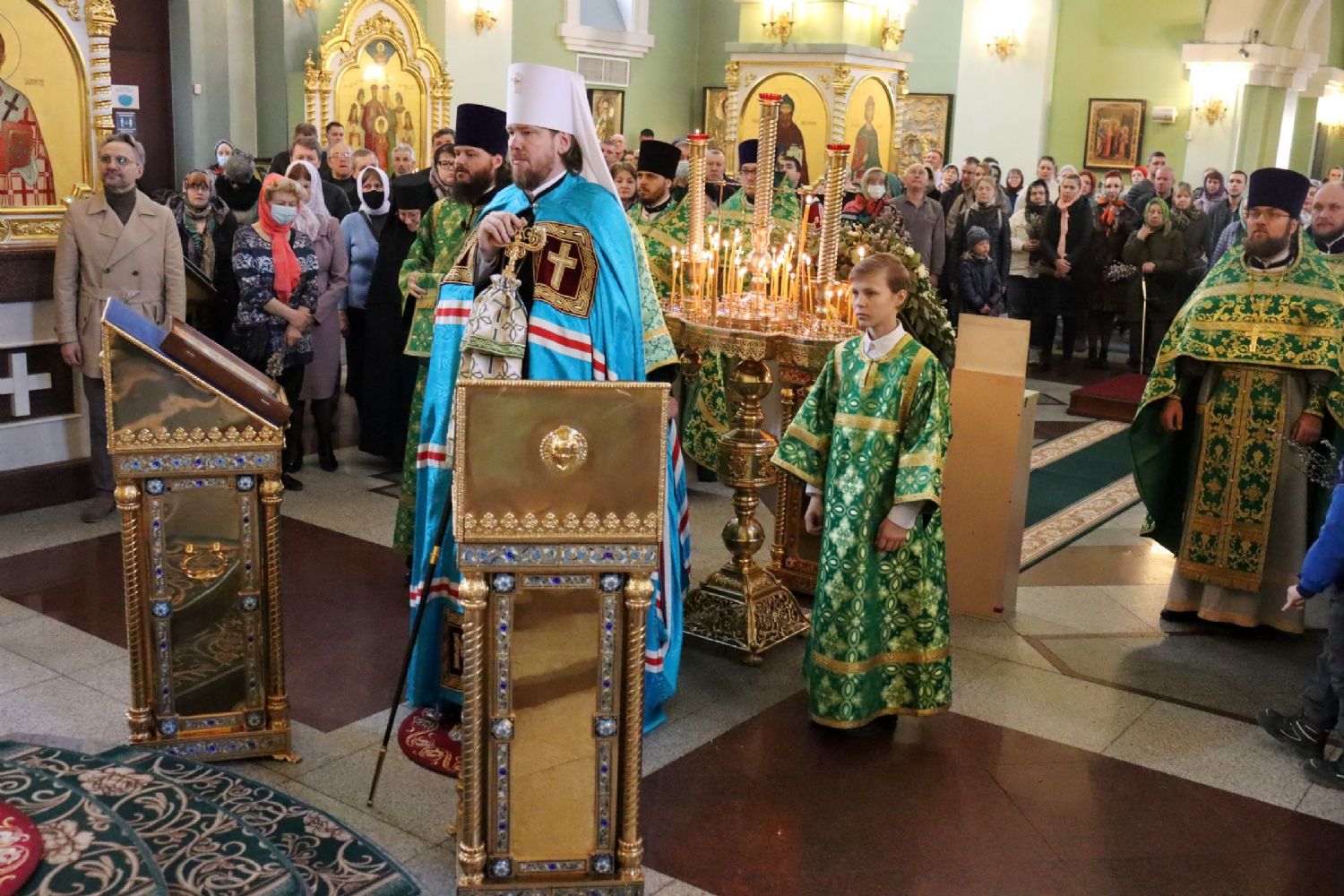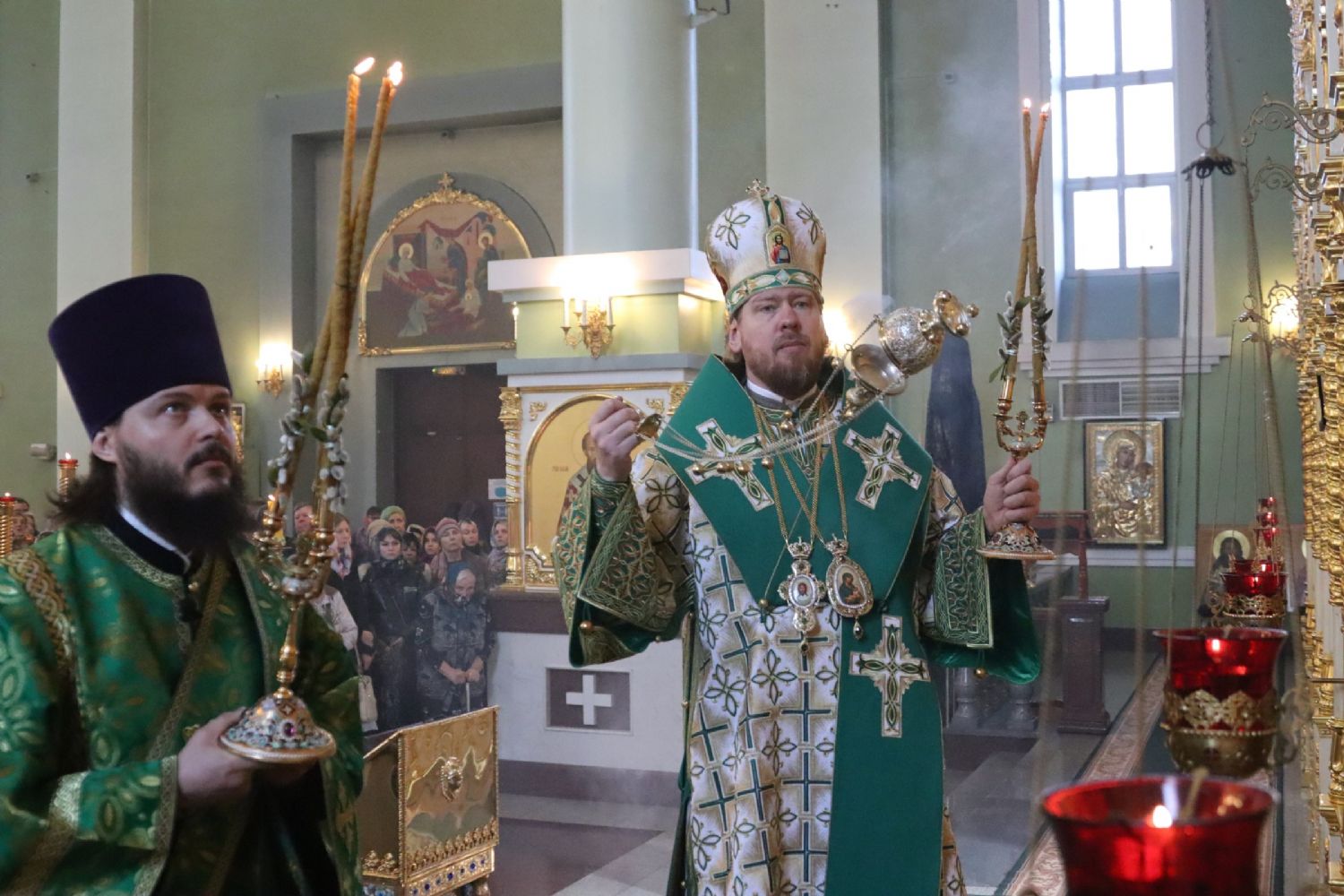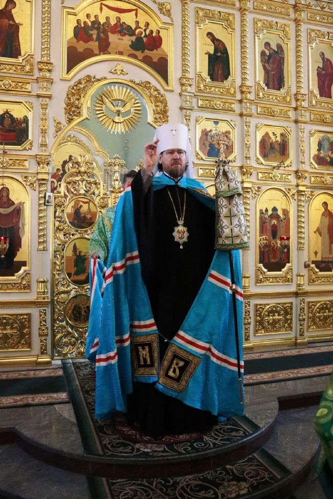 Его Высокопреосвященству сослужили: ключарь Покровского собора иерей Владимир Плотников, игумен Антоний (Каменчук), иерей Максим Точуков, иерей Олег Селезнёв, иерей Дионисий Ищенко.
