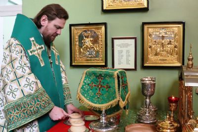 За богослужением митрополит Владимир благословил иподиакона Евгения Богатырева на ношение подрясника.