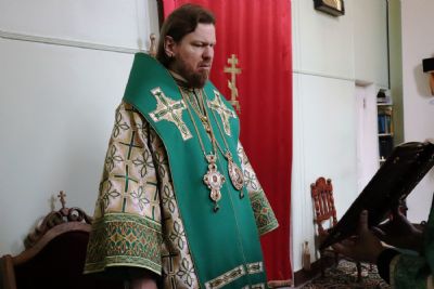 На малом входе глава Приморской митрополии совершил награждение клирика Покровского собора иерея Дионисия Ищенко. Во внимание к усердным пастырским трудам во славу Святой Церкви к празднику Пасхи Христовой он был удостоен права ношения фиолетовой камилавки.