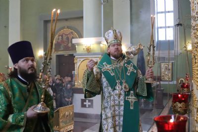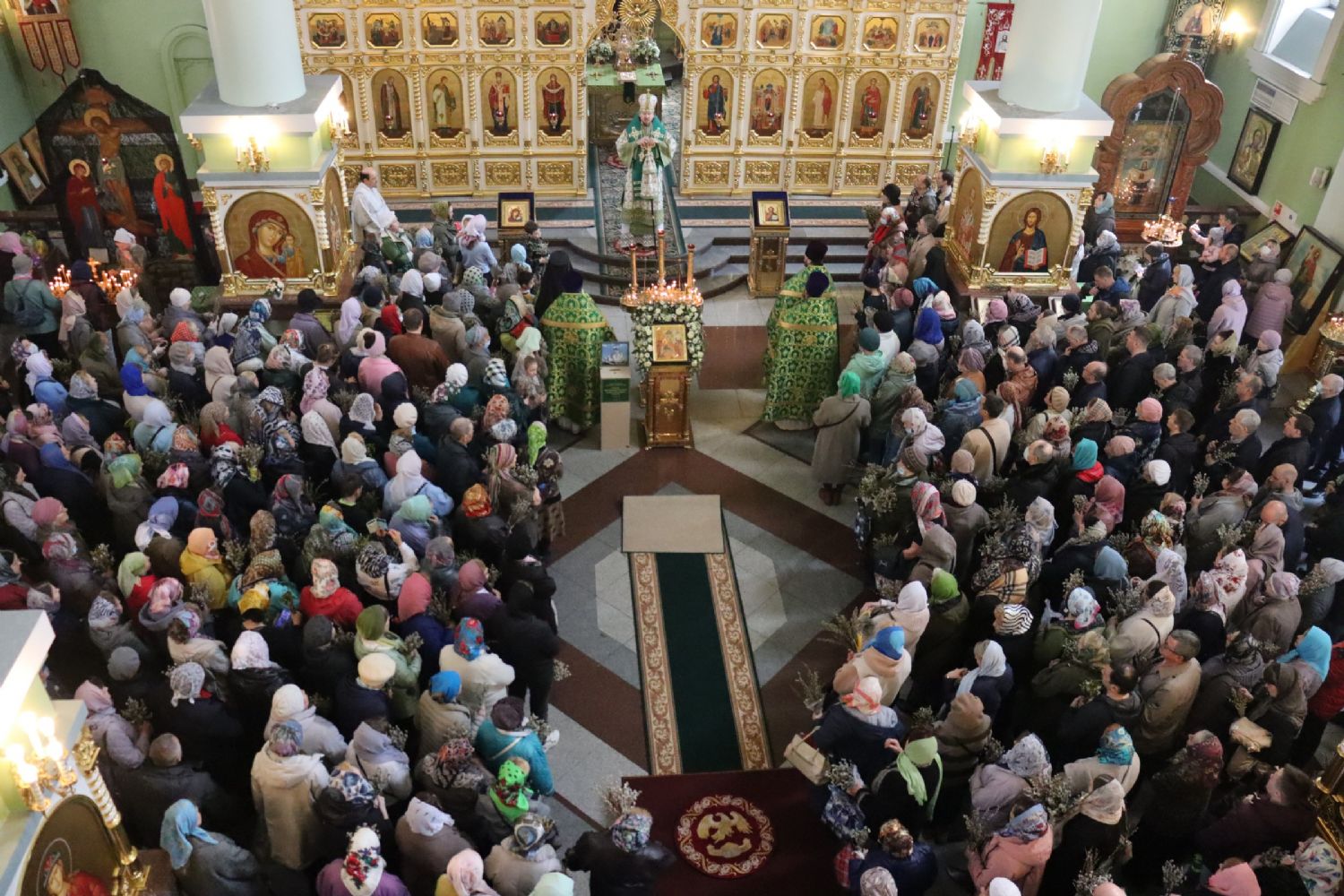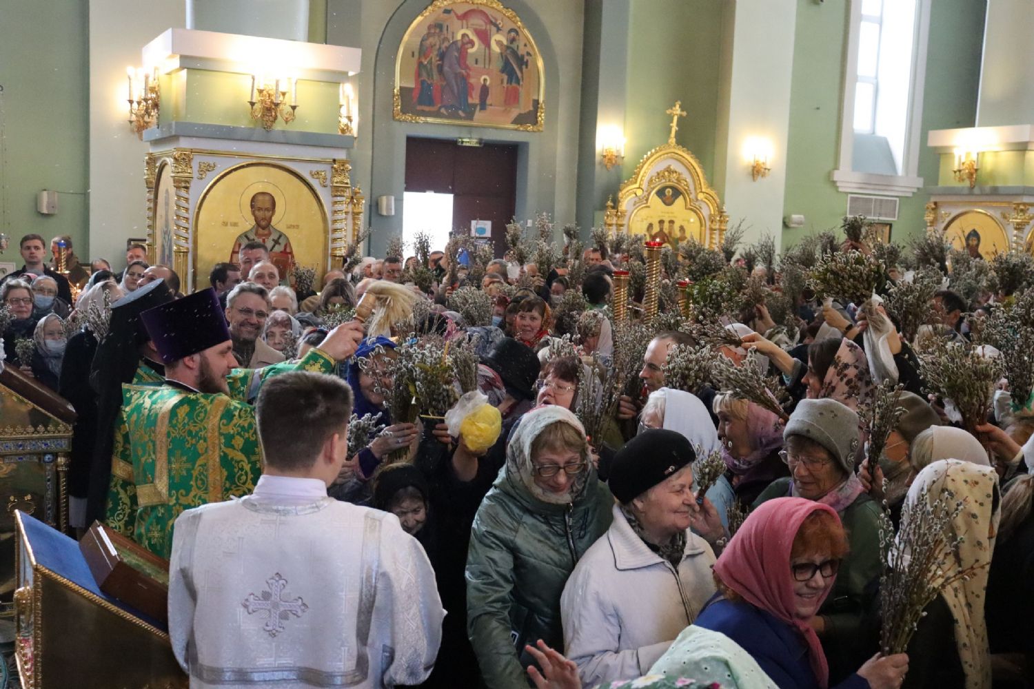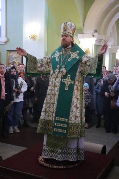 По отпусте литургии было совершено славление Господу нашему Иисусу Христу в честь праздника Входа Его в Иерусалим, затем владыка Владимир обратился к верующим с архипастырским словом.