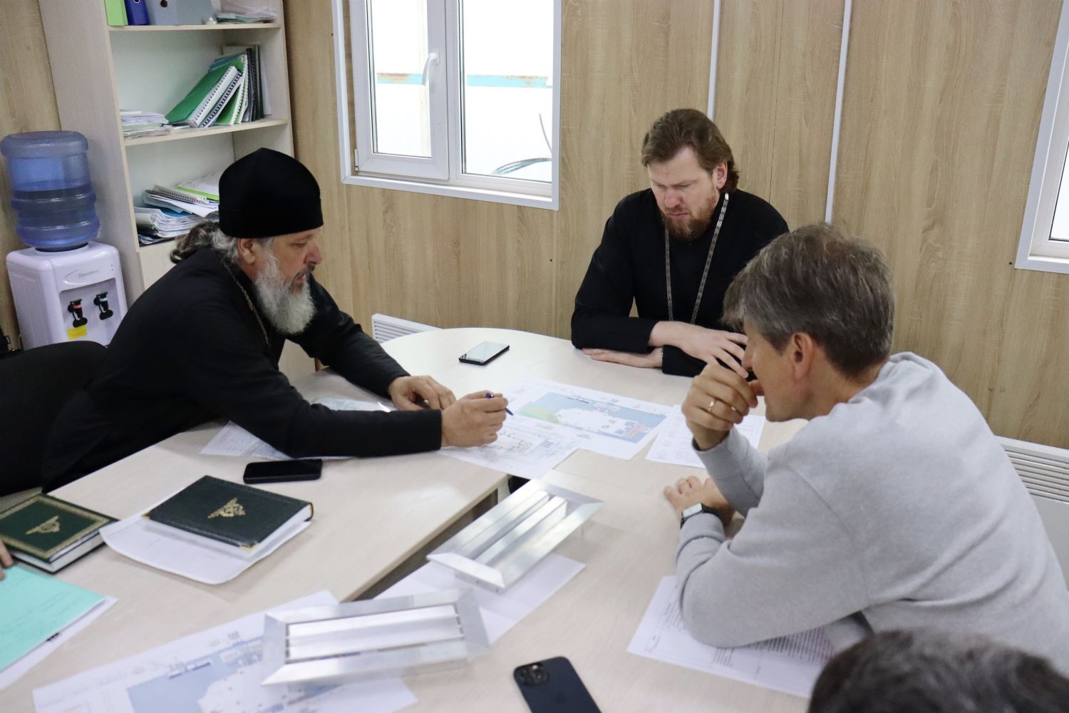 В совещании приняли участие: секретарь Владивостокской епархии, ответственный за строительство Спасо-Преображенского кафедрального собора протоиерей Игорь Талько; наместник Свято-Серафимовского мужского монастыря игумен Климент (Кривоносов); архитектор-дизайнер Владивостокской епархии Г. Якушкина; руководители и представители осуществляющих строительные работы подрядных организаций.