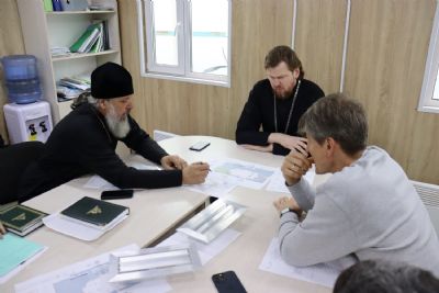 Владивосток. 20 апреля 2022 года митрополит Владивостокский и Приморский Владимир возглавил очередное рабочее совещание на строительной площадке Спасо-Преображенского кафедрального собора.