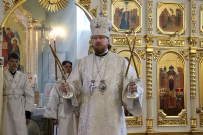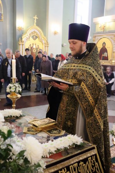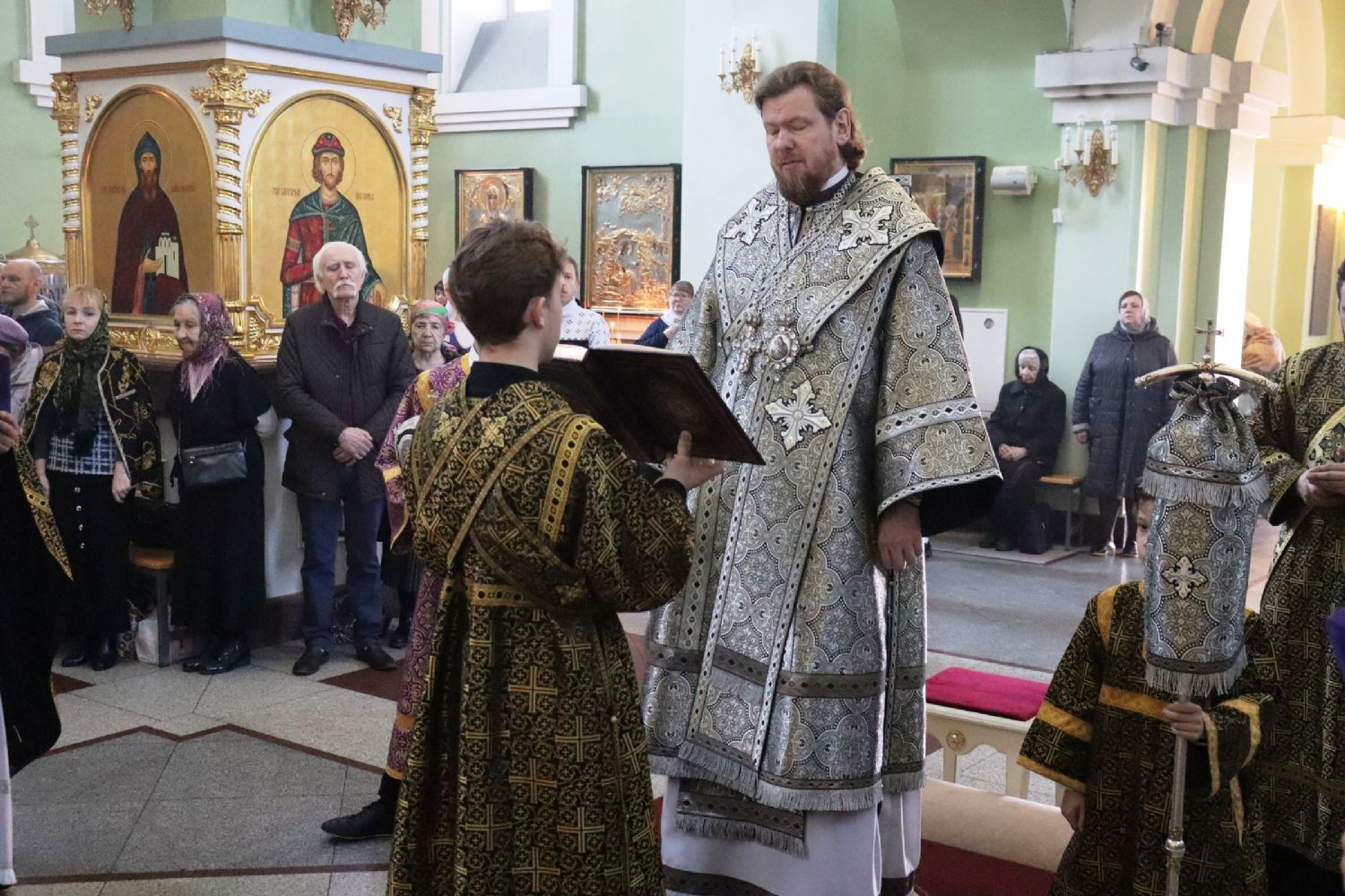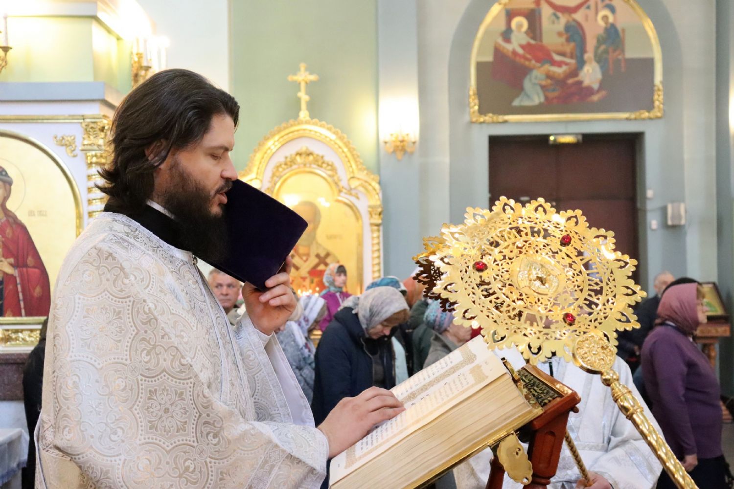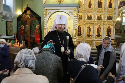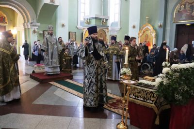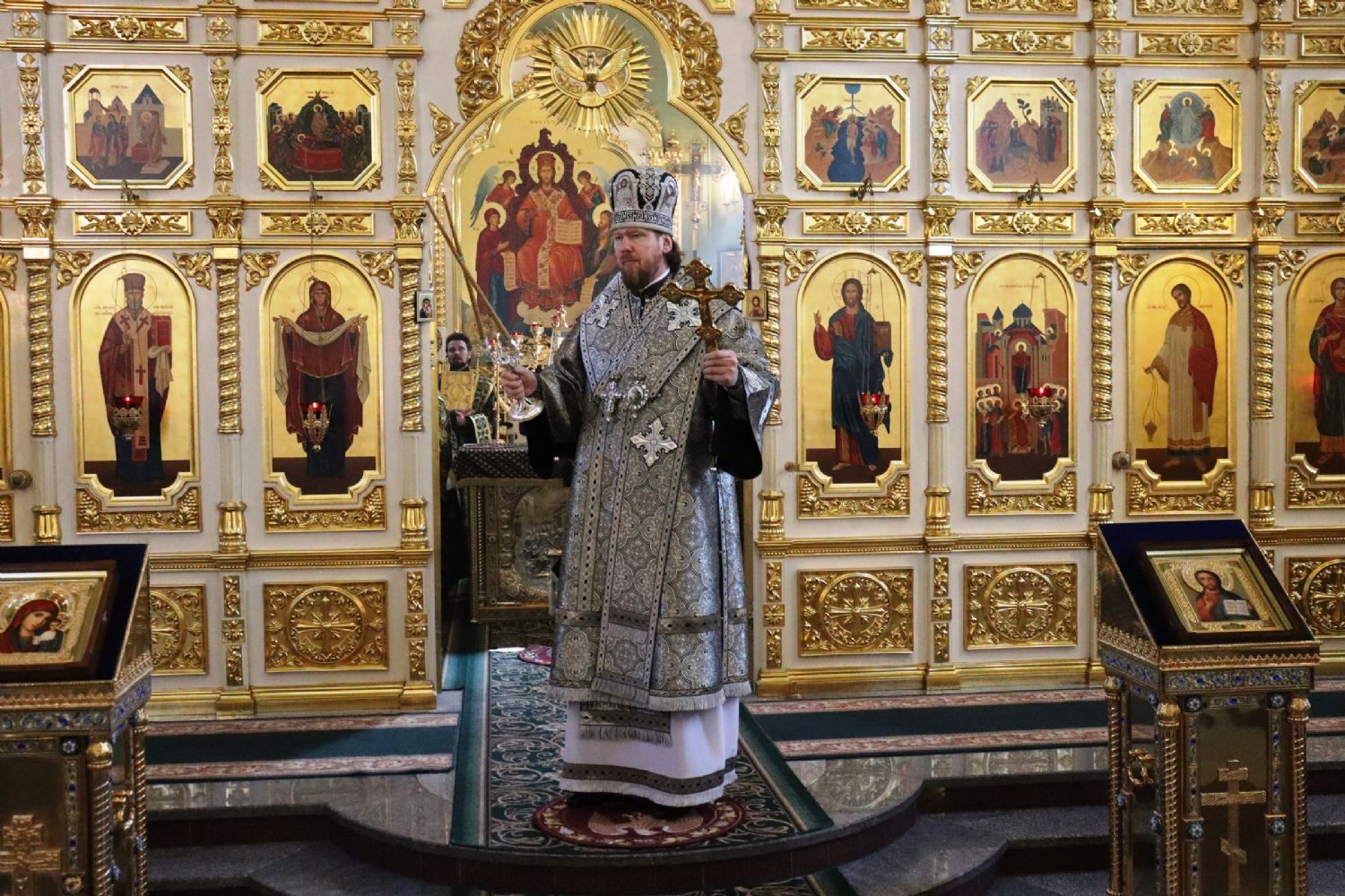 Его Высокопреосвященству сослужили: ключарь Покровского собора иерей Владимир Плотников, игумен Антоний (Каменчук), протоиерей Игорь Шевчук, иерей Максим Точуков, иерей Олег Селезнёв, иерей Дионисий Ищенко.