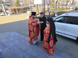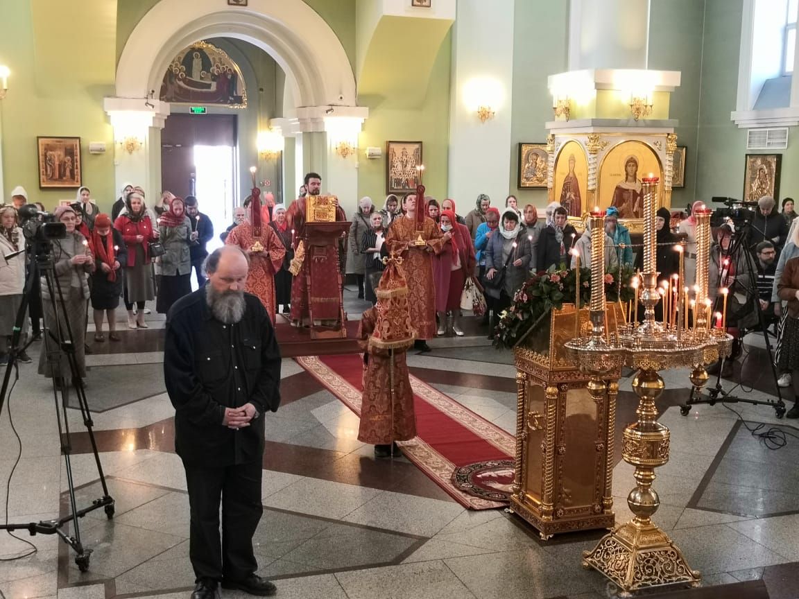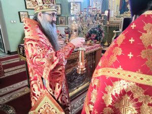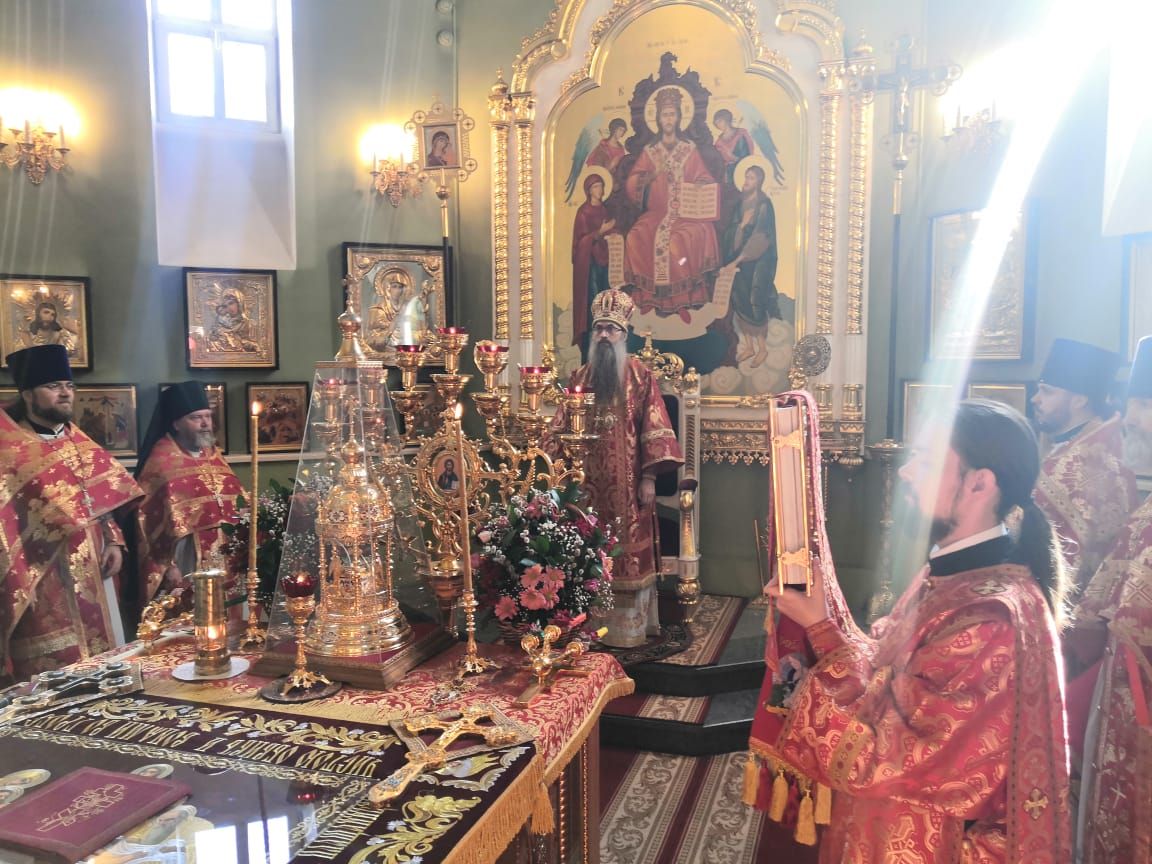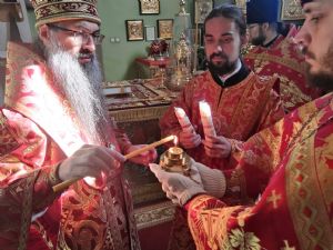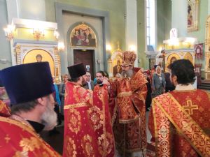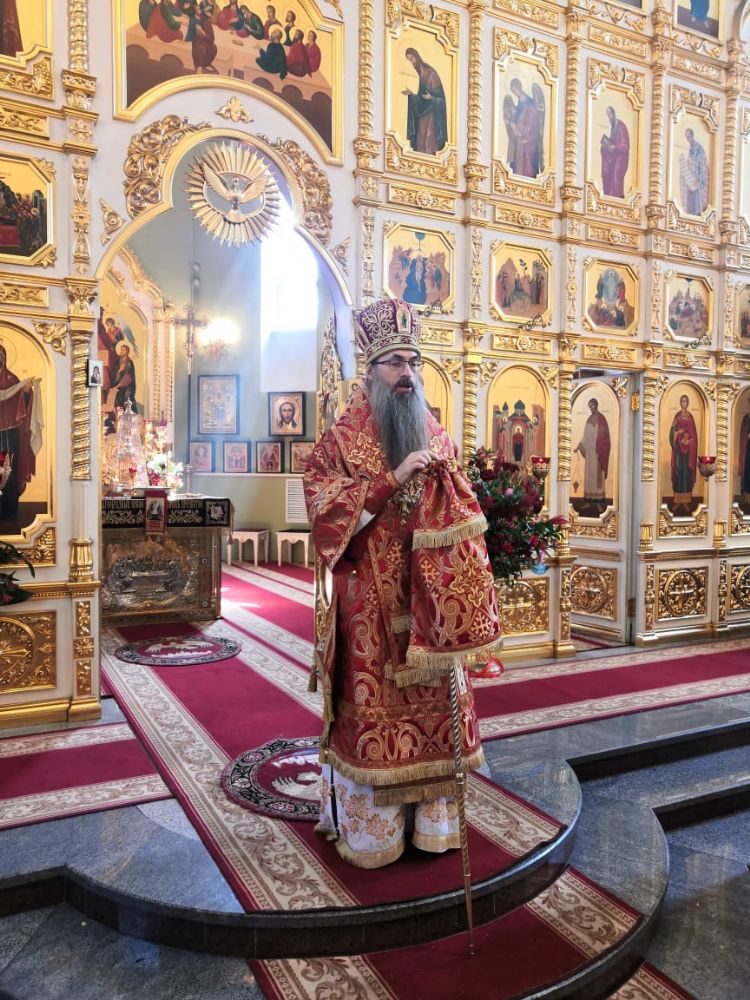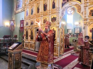 За богослужением Его Преосвященству сослужили ключарь собора иерей Владимир Плотников, игумен Антоний Каменчук, протоиерей Игорь Шевчук, иерец Дионисий Ищенко.