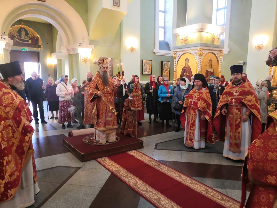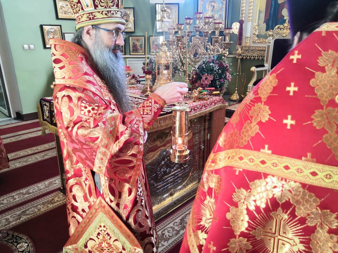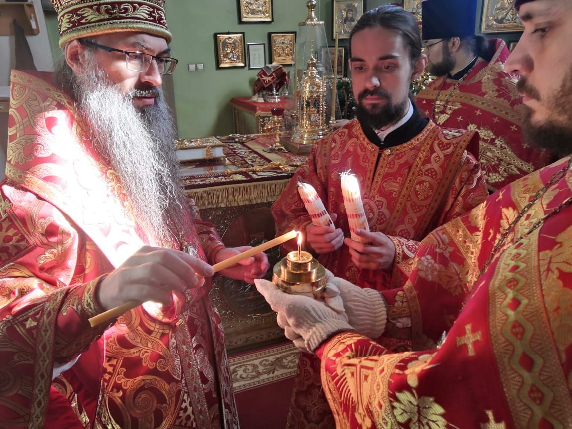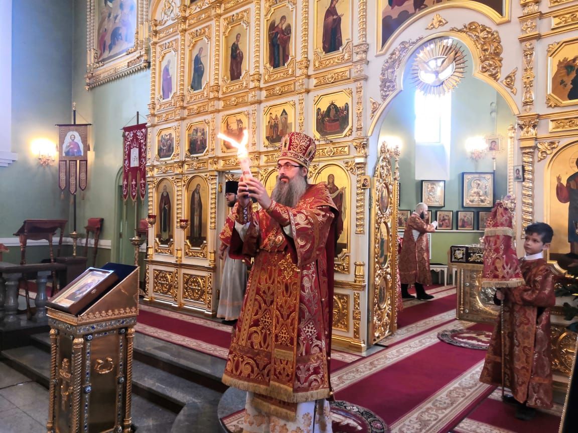 Епископ Иннокентий возглавил встречу Благодатного огня и совершил Божественную литургию в Покровском соборе