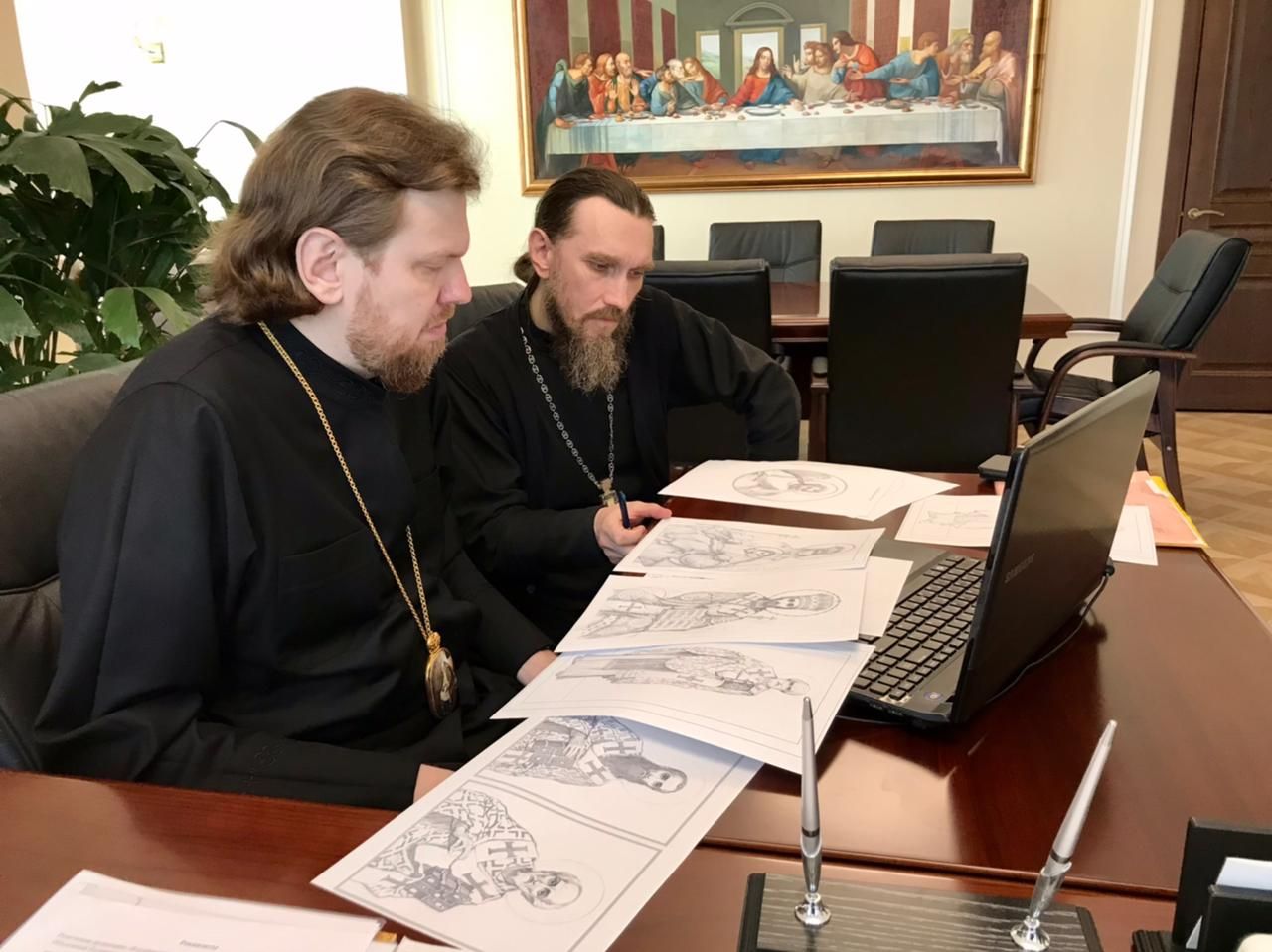 В ходе совещаний были рассмотрены эскизы икон местного ряда центрального иконостаса и приделов: Спасителя и Богородицы, святителя Николая и преподобного Сергия Радонежского в центральном алтаре; Спаса на троне и Божией Матери «Державная» в северном приделе; Спаса Нерукотворного и иконы Божией Матери «Владимирская» в южном приделе; эскизы икон Царских врат центрального алтаря и икон, которые будут установлены в сени над Царскими вратами; эскизы икон Господских праздников из второго яруса иконостаса.