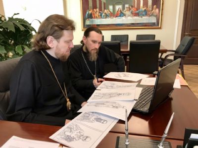 Участники видеоконференций обсудили особенности стилистики икон, которые будут написаны для иконостаса, стен и колонн Спасо-Преображенского кафедрального собора.