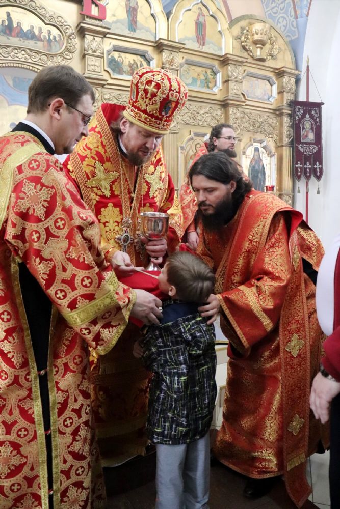 В завершение богослужения архипастырь поздравил прихожан со Светлым Христовым Воскресением, причастников — с принятием Святых Христовых Таин, и преподал благословение.