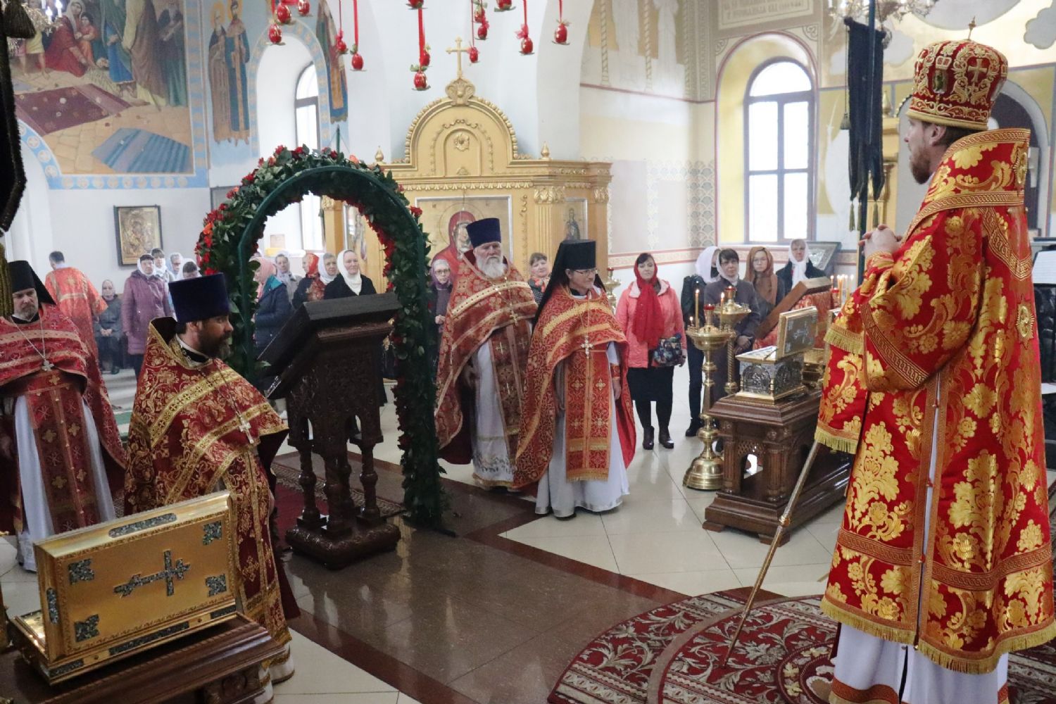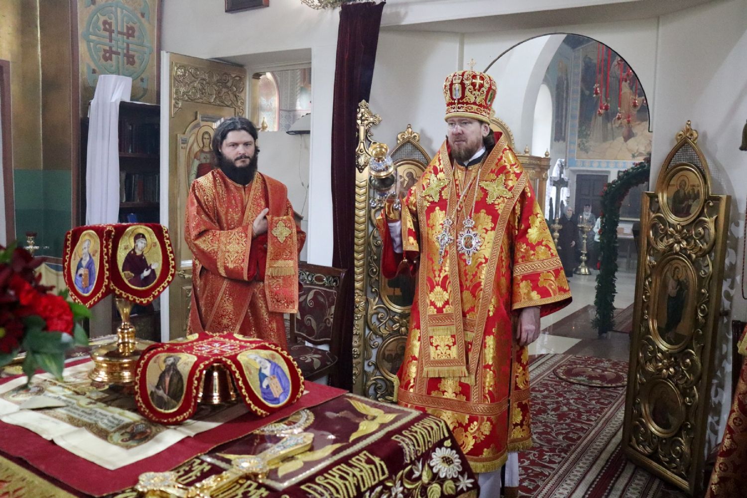 Его Высокопреосвященству сослужили: благочинный II округа Владивостокской епархии, настоятель храма святителя Николая города Уссурийска протоиерей Андрей Машанов; иеромонах Вениамин (Козин); настоятель храма Покрова Пресвятой Богородицы города Уссурийска протоиерей Сергий Якутов; настоятель храма преподобного Серафима Саровского города Уссурийска протоиерей Григорий Цуркан; заместитель благочинного I Владивостокского благочиния, ответственный за организацию архиерейских богослужений протоиерей Димитрий Федорин; иерей Владимир Григорьев; иеромонах Платон (Карпов).
