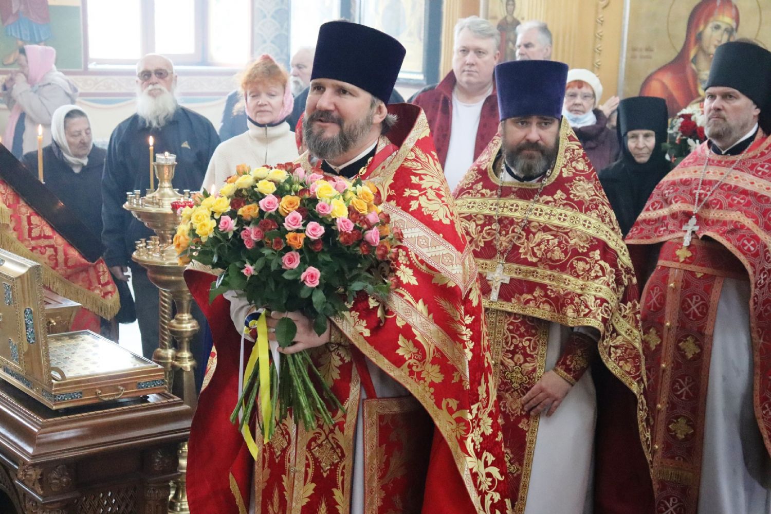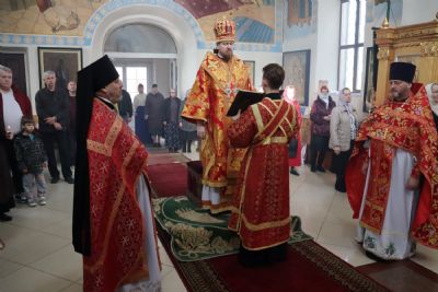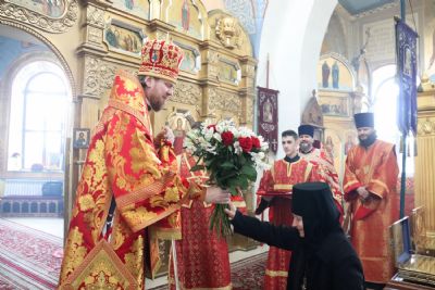 Настоятель храма протоиерей Сергий Якутов от имени клира и прихожан поблагодарил владыку Владимира за архипастырский визит, поздравил со Светлым Христовым Воскресением и преподнес букет цветов.