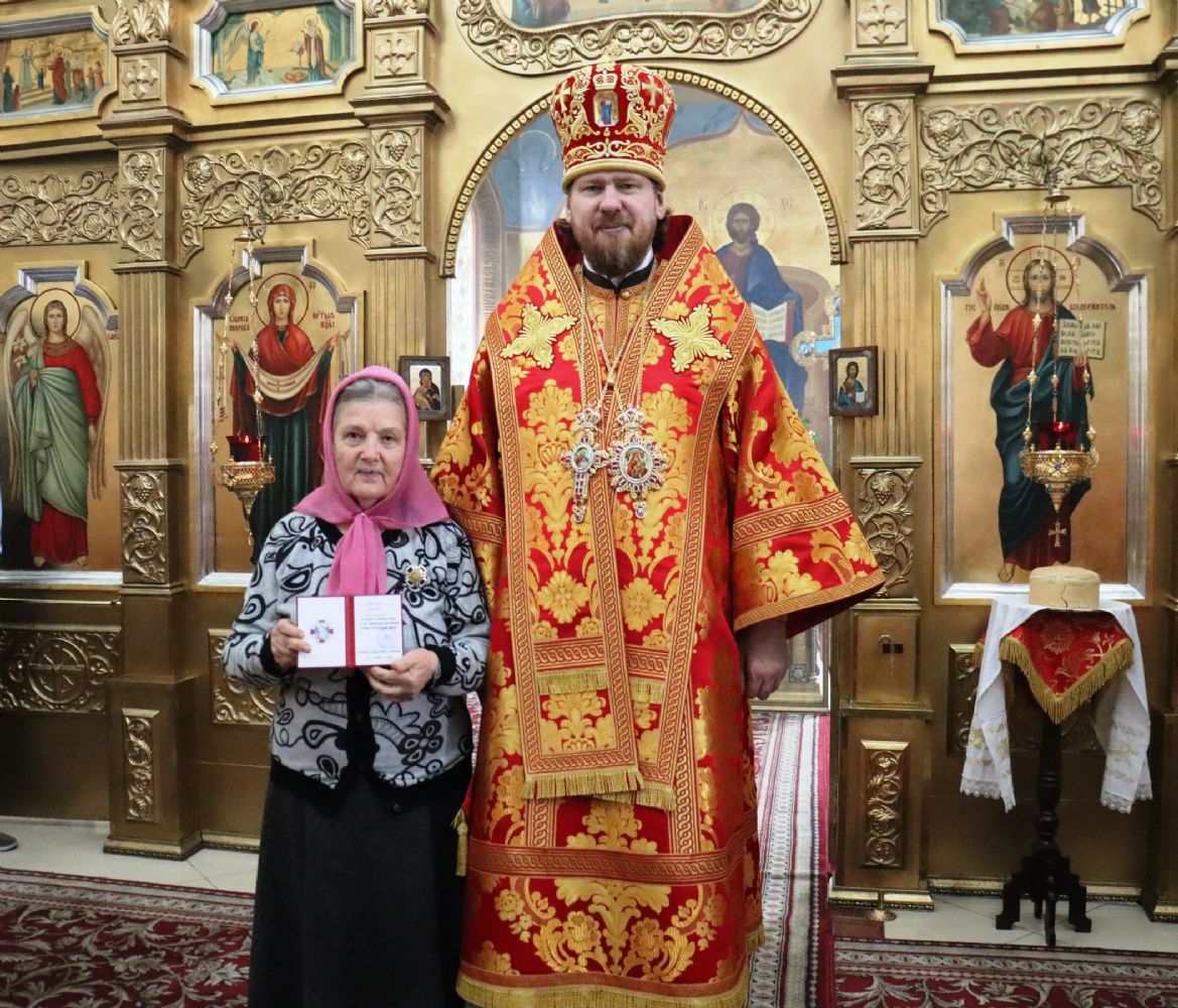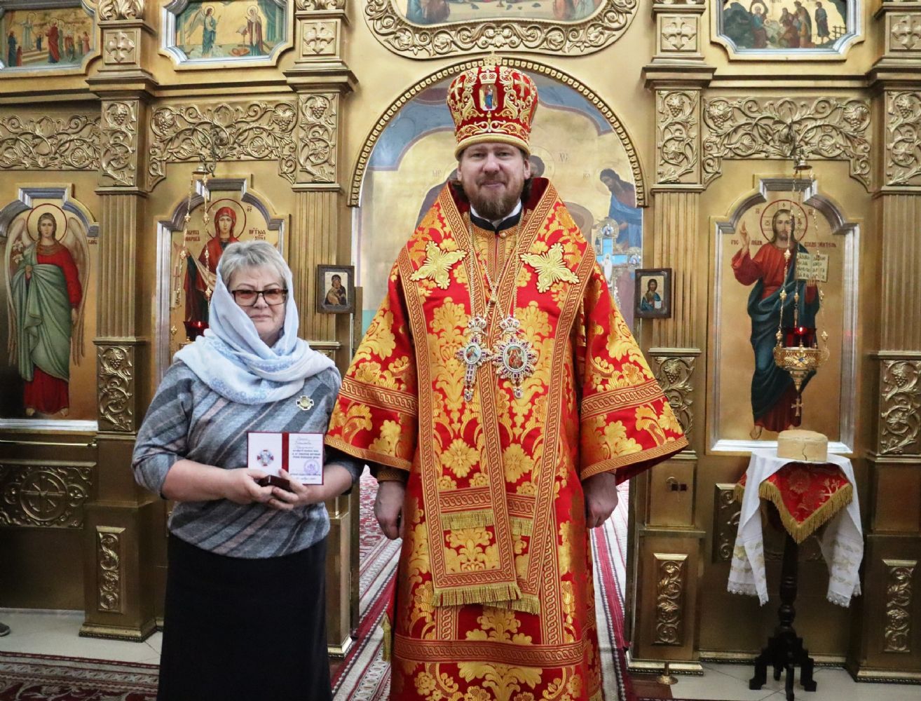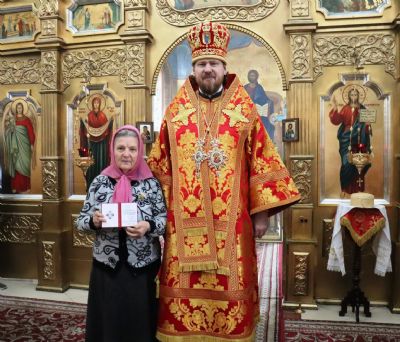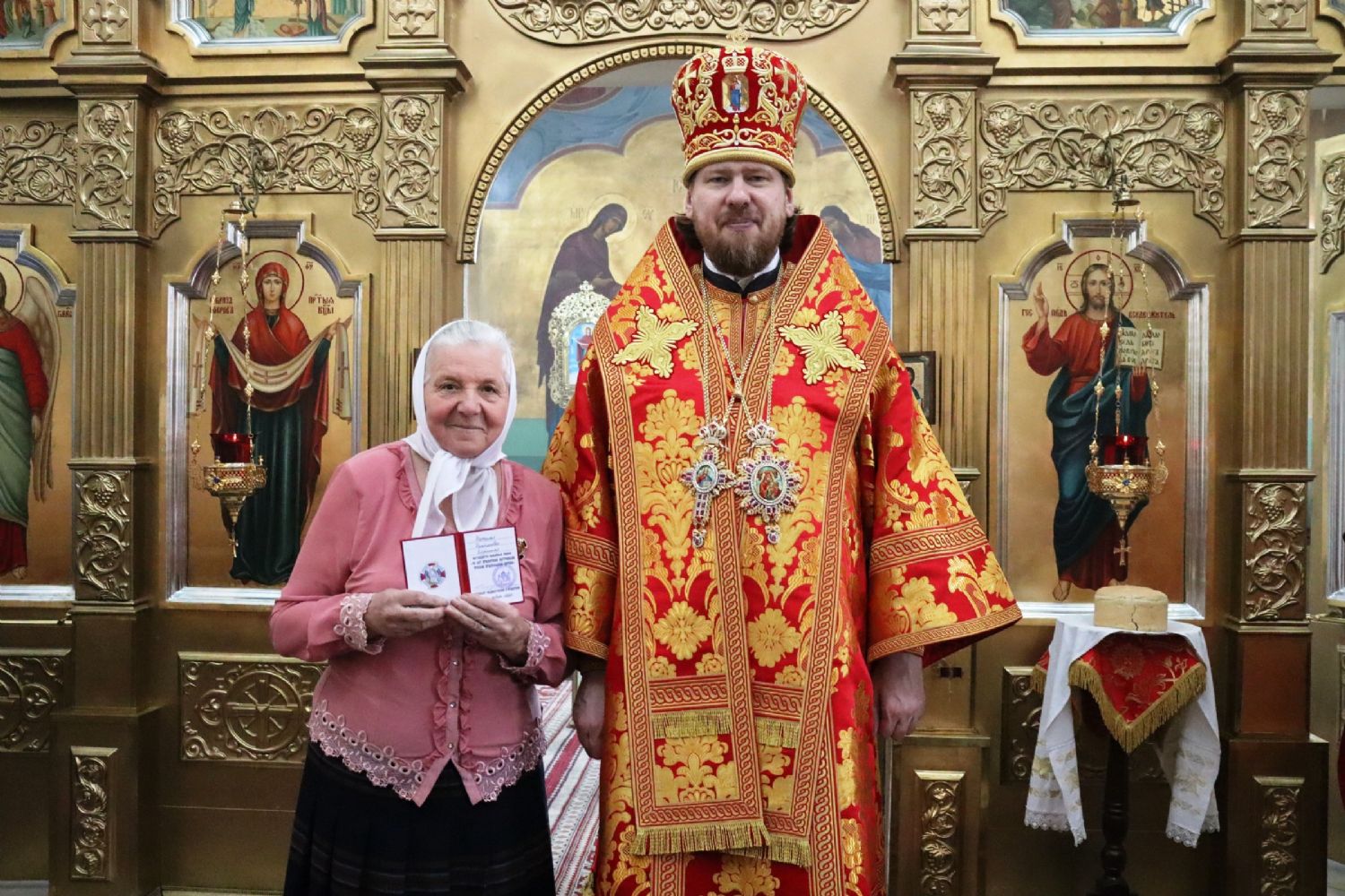 Затем состоялось награждение тружеников храма. Владыка Владимир вручил юбилейные памятные знаки «10 лет Приморской митрополии Русской Православной Церкви» монаху Владимиру (Озолсу), Т. Е. Старцевой, М. М. Винниковой, Н. Н. Карпенко, И. В. Подлужной.
