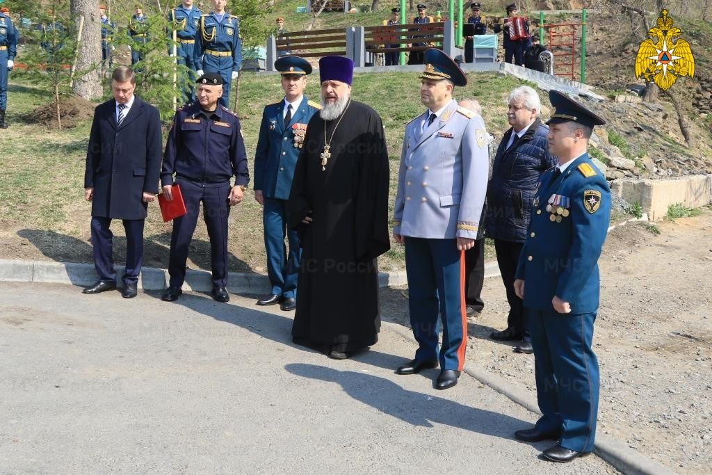 Владивосток. 29 апреля 2022 года в преддверии 373-летия Дня пожарной охраны России прошло торжественное открытие сквера «Пожарных и спасателей», расположенного на улице Енисейская. В мероприятии принял участие секретарь епархии протоиерей Игорь Талько.