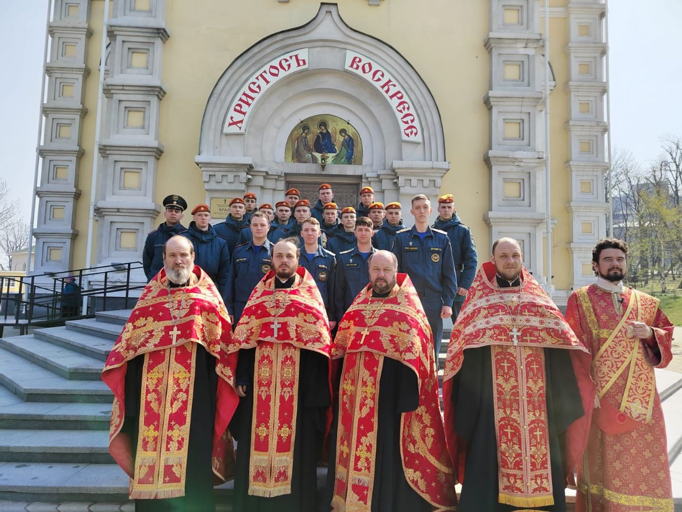 За богослужением молились и приняли участие курсанты Дальневосточной пожарно-спасательной академии и сотрудники Главного управления МЧС по Приморскому краю.