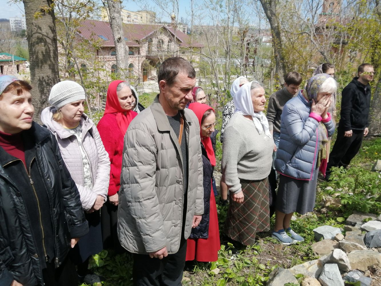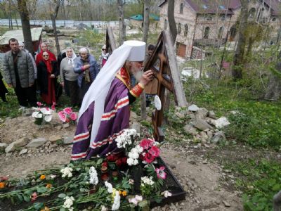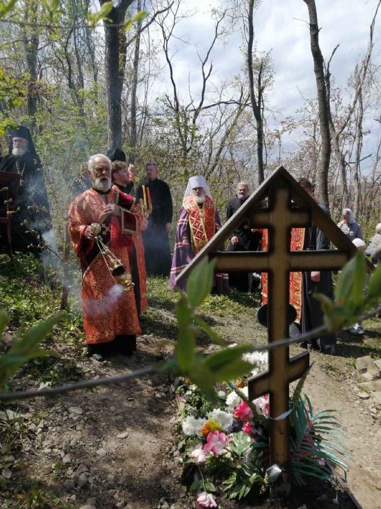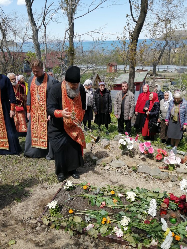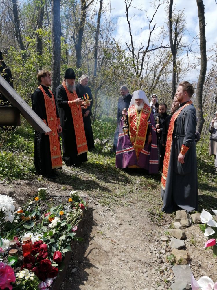 Владивосток. 8 мая 2022 года, в неделю 3-ю по Пасхе, святых жен-мироносиц, митрополит Вениамин (Пушкарь) совершил пасхальную панихиду на месте упокоения протоирея Виктора Жильцова.