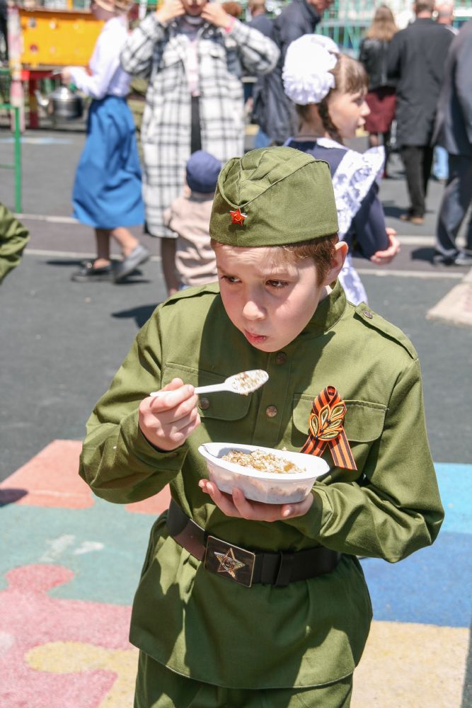 Ребята вышли к зрителям в военной форме, каждый класс представил свой род войск, как на настоящем параде и представили навыки построения, перестроения. И промаршировали со строевыми песнями, отдавая дань уважения «Бессмертному полку». Завершилось мероприятие небольшим праздничным концертом и традиционной солдатской кашей.