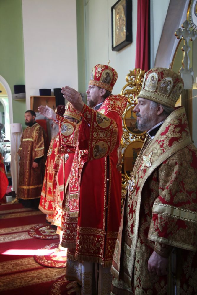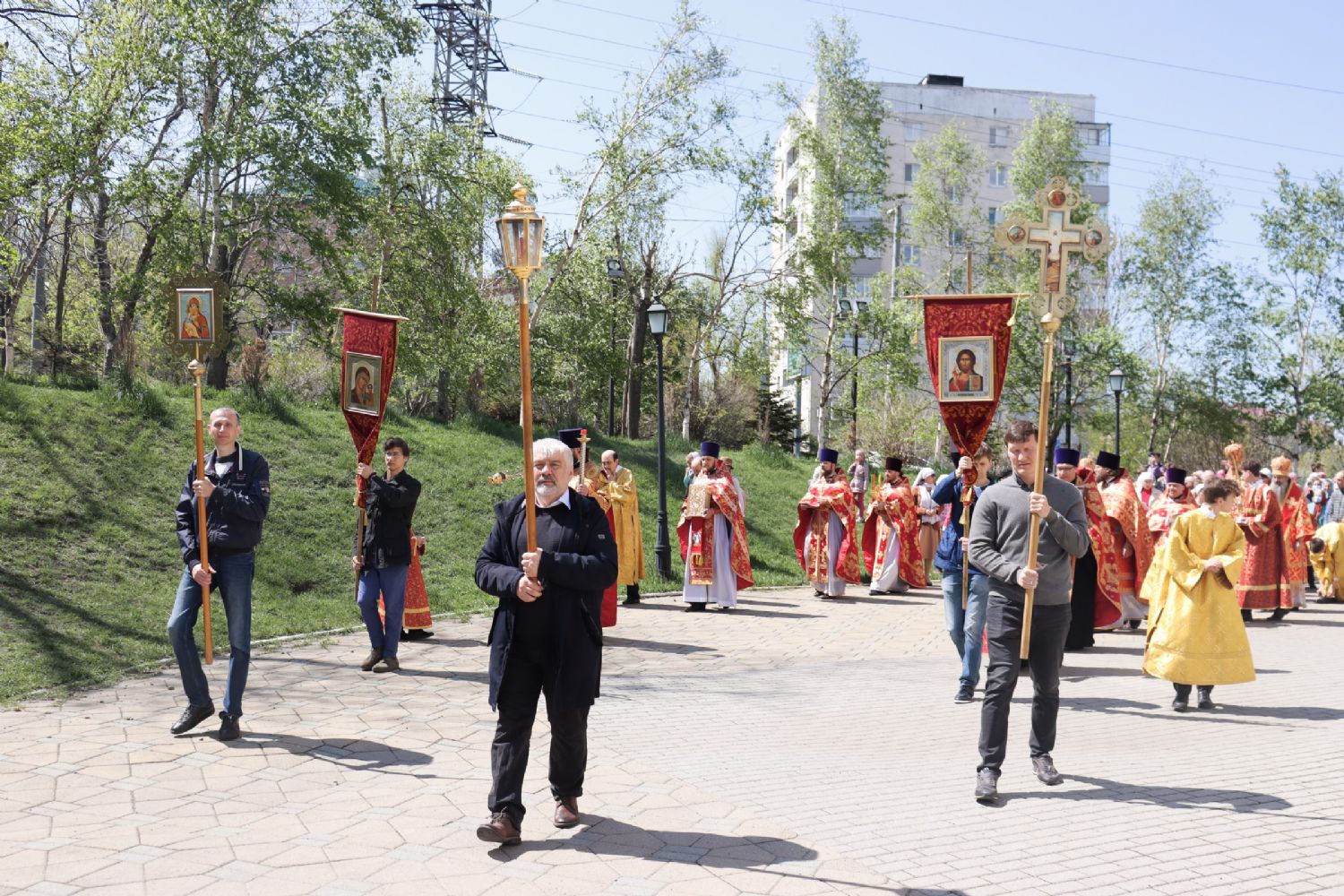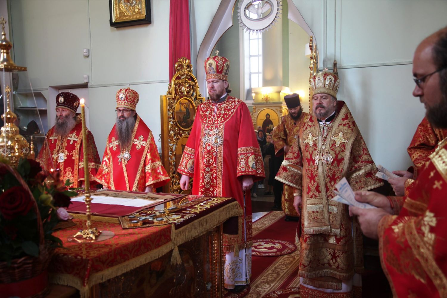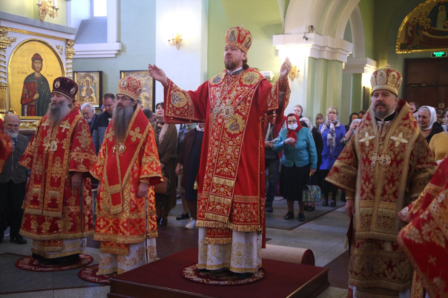 Владивосток. 15 мая 2022 года, в Неделю 4-ю по Пасхе, о расслабленном, и день празднования перенесения мощей благоверных князей Российских Бориса и Глеба, во Святом Крещении Романа и Давида, митрополит Владивостокский и Приморский Владимир в сослужении епископа Уссурийского Иннокентия, викария Владивостокской епархии, епископа Находкинского и Преображенского Николая, епископа Арсеньевского и Дальнегорского Гурия совершил Божественную литургию в Покровском соборе.
