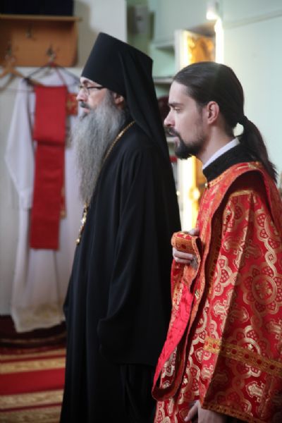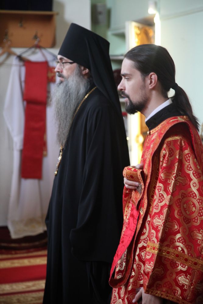Архипастырям сослужили: благочинный I Владивостокского благочиния Владивостокской епархии, исполняющий обязанности благочинного II Владивостокского благочиния, протоиерей Сергий Шуталев; ключарь Покровского собора иерей Владимир Плотников; заместитель благочинного I Владивостокского благочиния, ответственный за организацию архиерейских богослужений в храмах Владивостокской епархии протоиерей Димитрий Федорин; иерей Максим Точуков; иерей Олег Селезнёв; иерей Дионисий Ищенко.