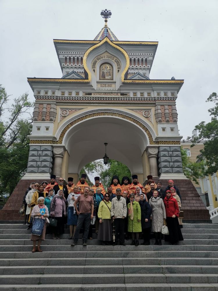 Молебен был совершен по случаю 131-й годовщины посещения Цесаревичем Николаем Александровичем Южно-Уссурийского края. В 1891 году, 25 мая (по новому стилю), будущий Государь Николай II сошел на берег бухты Золотой Рог — в месте, где благодарные потомки установили затем Николаевскую арку (триумфальные ворота).