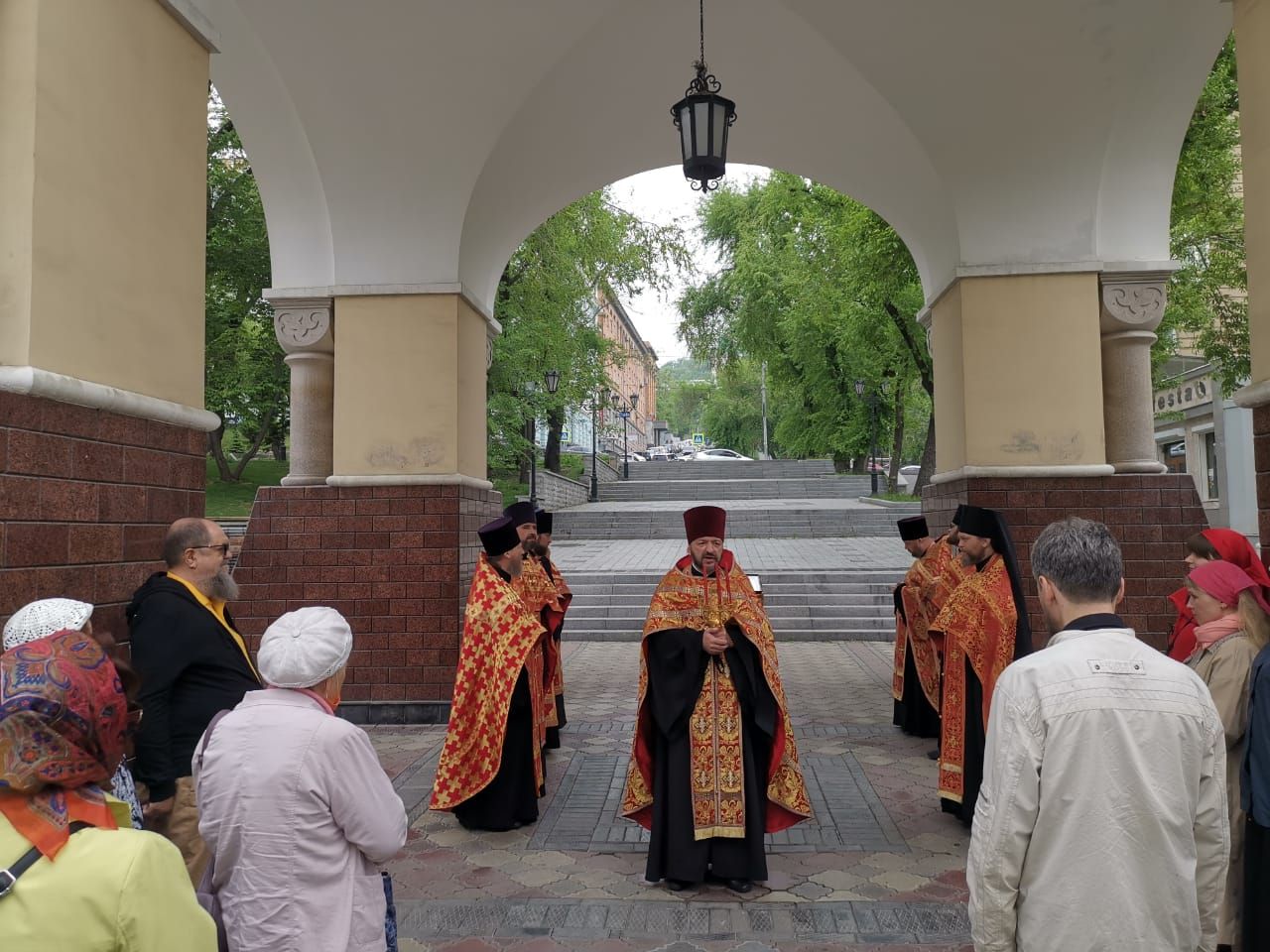 Сонм духовенства Владивостокской епархии совершил молебен у Триумфальной арки Цесаревича Николая