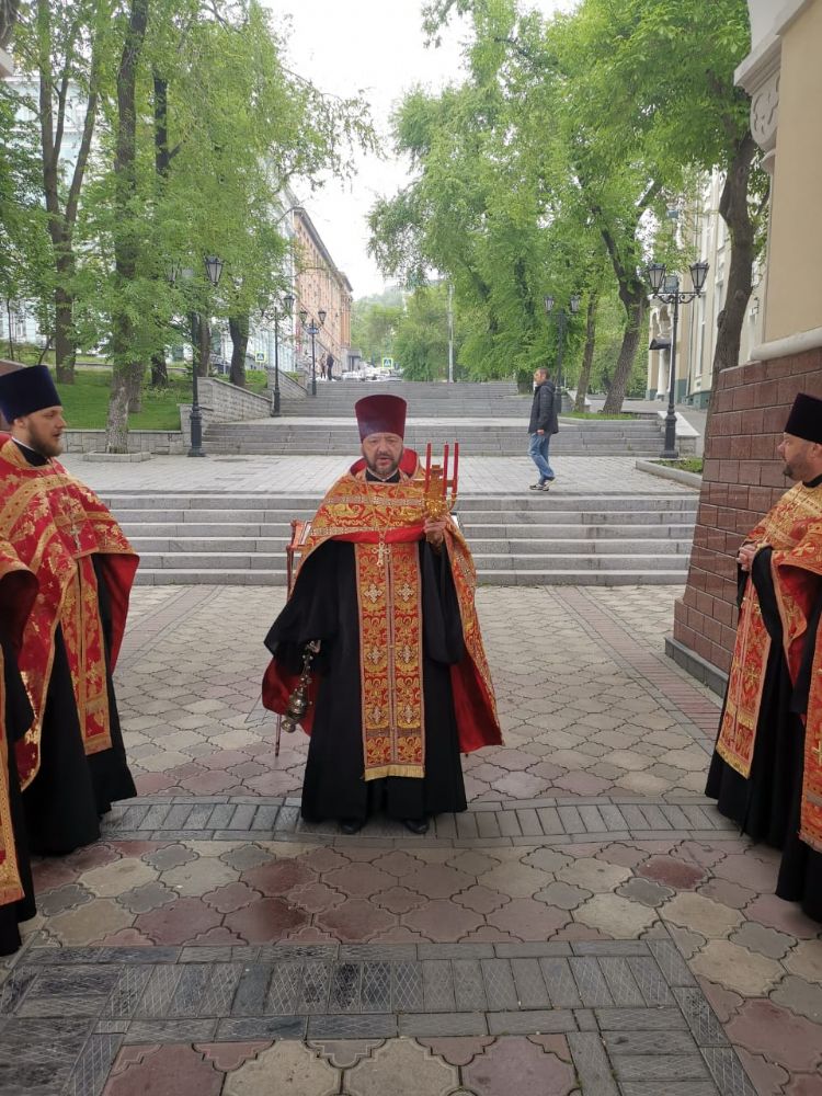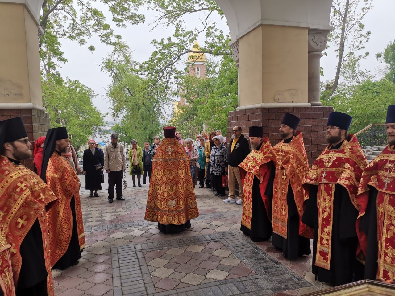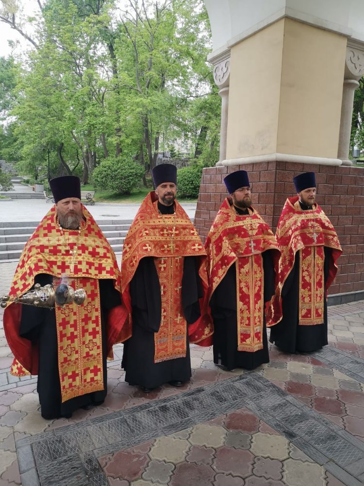 Богослужение совершили настоятель храма святой мученицы Татианы гор. Владивостока протоиерей Максим Романенко, благочинный Свято-Никольского собора игумен Алексий (Несмеев), настоятель храма новомучеников и исповедников Церкви Русской протоиерей Андрей Метелев, заместитель благочинного I Владивостокского благочиния протоиерей Димитрий Федорин; ключарь Успенского храма протоиерей Олег Дикмаров; иеромонах Марк (Корнилов), иерей Максим Точуков, иерей Димитрий Брызгалов, иерей Дионисий Ищенко.