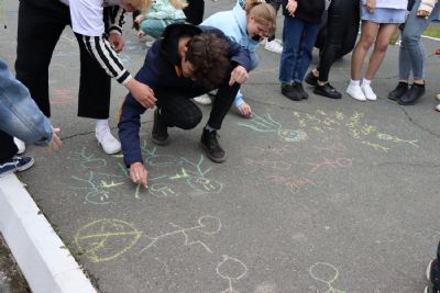 По завершении официальной части мероприятия всем участникам были розданы цветные мелки, чтобы нарисовать человечков в память о погибших в утробах детях.