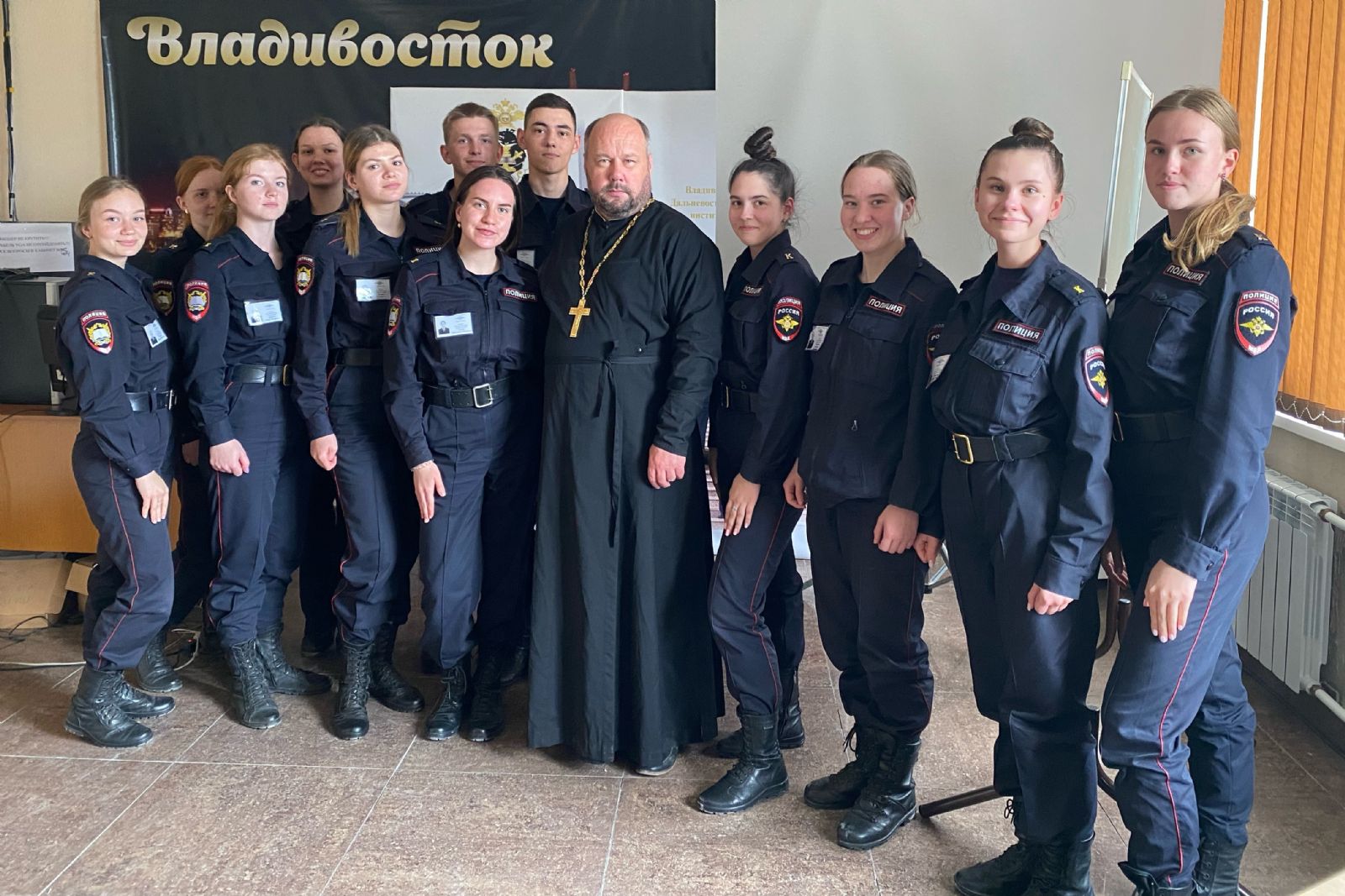Владивосток. 3 июня 2022 года Руководитель епархиального отдела по взаимодействию с правоохранительными органами и МЧС, член Общественного совета при УМВД по Приморскому краю, иерей Дмитрий Брызгалов принял участие в проведении занятия с курсантами Владивостокского филиала Дальневосточного юридического института МВД России по дисциплине «Религиоведение и основы противодействия религиозному экстремизму». В ходе занятия священник обозначил актуальные проблемы современного религиозного экстремизма, его предпосылки и пути преодоления.
