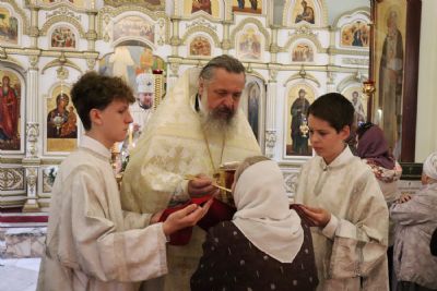 Владыка Владимир поздравил причастников с принятием Святых Христовых Таин и преподал благословение.