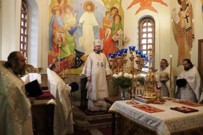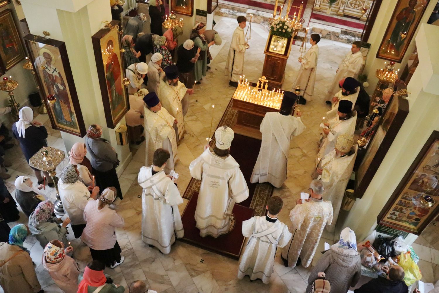 В Троицкую родительскую субботу митрополит Владимир совершил литургию и поминовение усопших в храме святых равноапостольных Кирилла и Мефодия