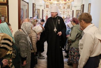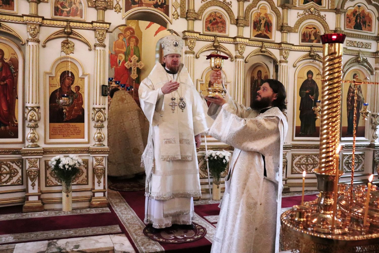 В завершение богослужения настоятель храма протоиерей Игорь Талько от имени клира и прихожан поблагодарил владыку за архипастырский визит и преподнес букет цветов.