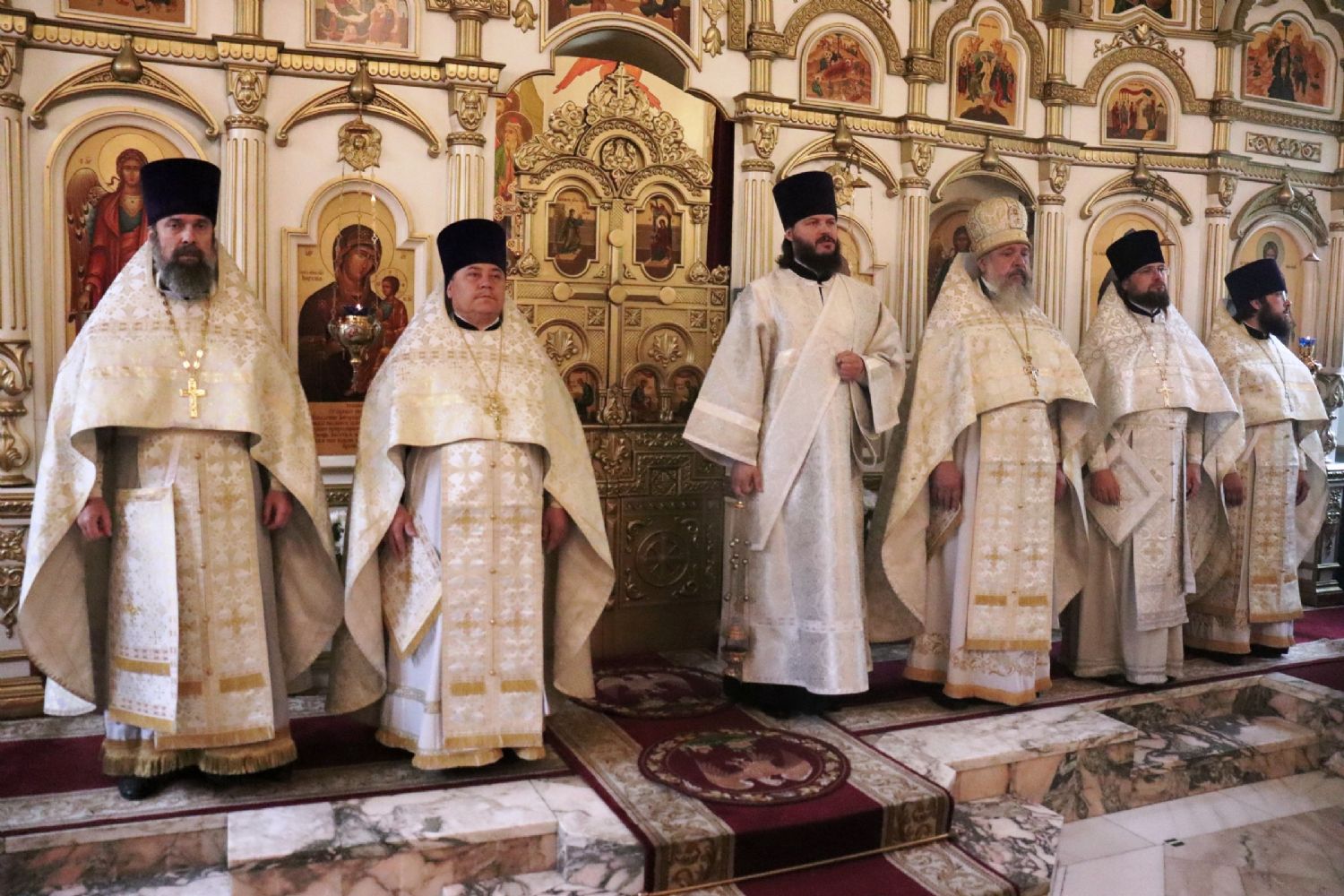 Его Высокопреосвященству сослужили: секретарь епархии, настоятель храма протоиерей Игорь Талько; благочинный I Владивостокского благочиния Владивостокской епархии, исполняющий обязанности благочинного II Владивостокского благочиния протоиерей Сергий Шуталев; заместитель благочинного I Владивостокского благочиния, ответственный за организацию архиерейских богослужений в храмах Владивостокской епархии протоиерей Димитрий Федорин; иерей Николай Манукян; иерей Илия Талько.