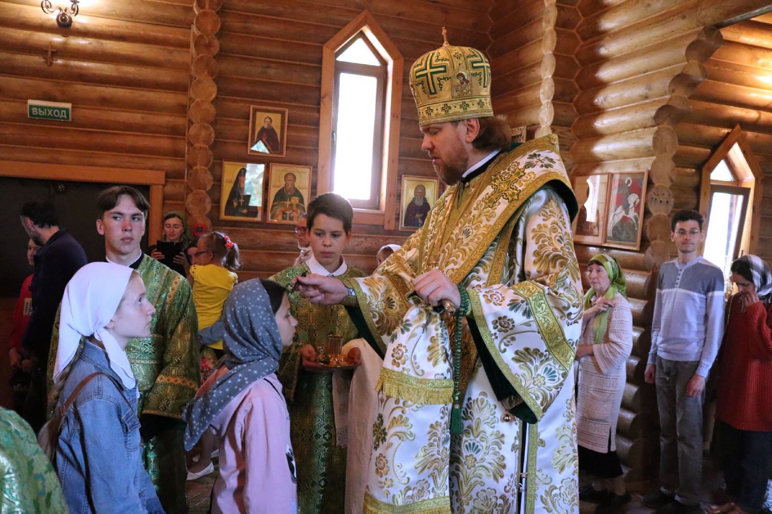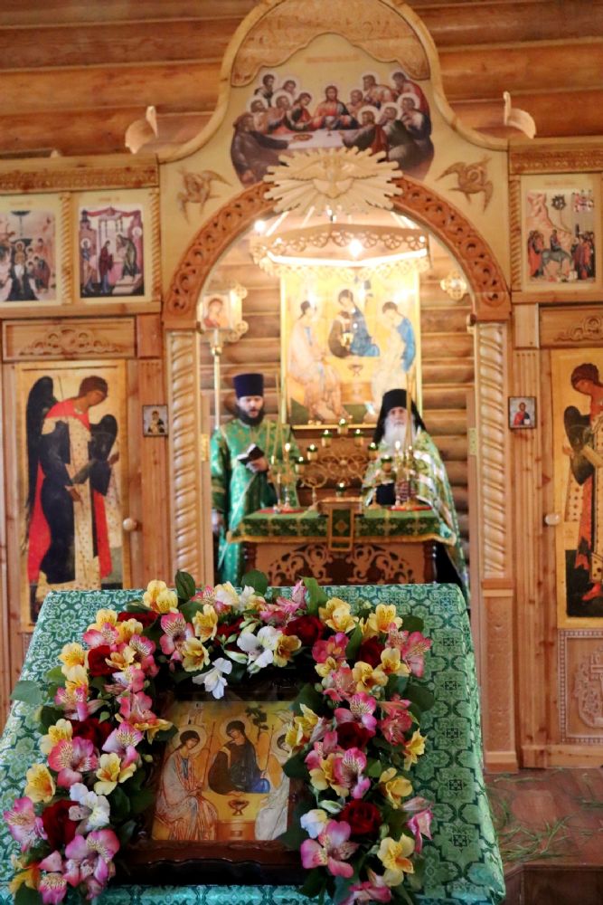В завершение богослужения настоятель Троицкого храма иеромонах Палладий (Белоус) от имени духовенства и прихожан поблагодарил митрополита Владимира за архипастырский визит, поздравил с кануном великого двунадесятого праздника Святой Пятидесятницы и преподнес букет цветов.