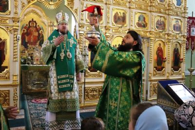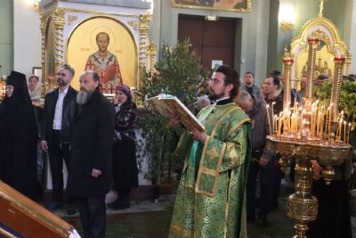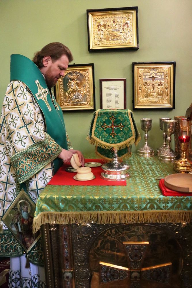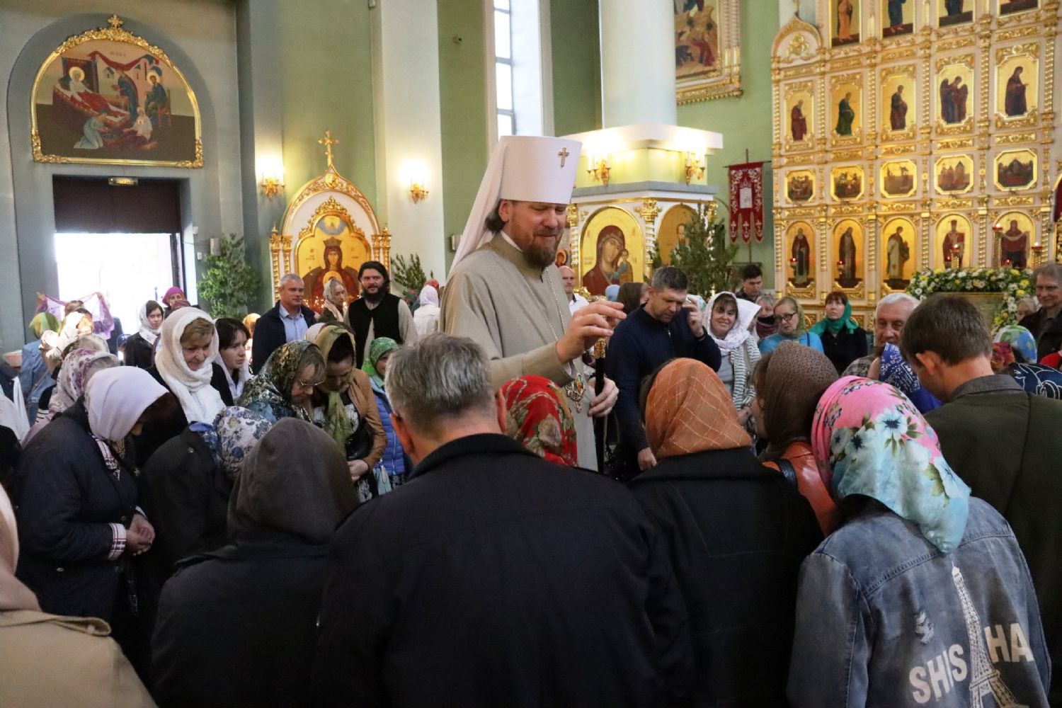 Его Высокопреосвященству сослужили: ключарь Покровского собора иерей Владимир Плотников; иерей Олег Селезнёв; иерей Дионисий Ищенко.