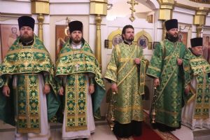 Его Высокопреосвященству сослужили: благочинный I Владивостокского благочиния Владивостокской епархии, исполняющий обязанности благочинного II Владивостокского благочиния протоиерей Сергий Шуталев; ключарь Покровского собора иерей Владимир Плотников; заместитель благочинного I Владивостокского благочиния, ответственный за организацию архиерейских богослужений в храмах Владивостокской епархии протоиерей Димитрий Федорин; иерей Максим Точуков, иерей Дионисий Ищенко.