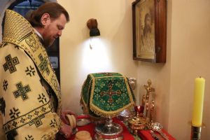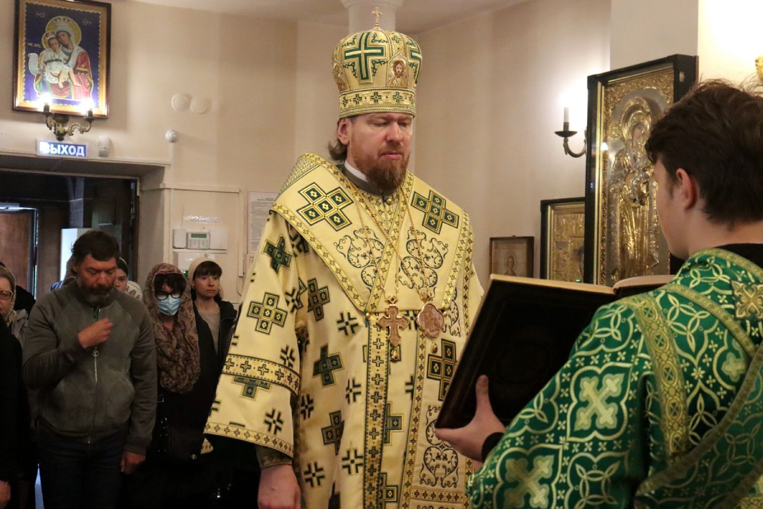 Поблагодарив за поздравление, владыка Владимир обратился к верующим с архипастырским словом, поздравил прихожан с престольным праздником храма, сугубо поздравил причастников с принятием Святых Христовых Таин и преподал архипастырское благословение.