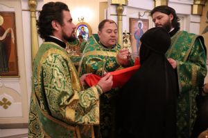 В завершение богослужения ключарь Покровского собора от имени клира и прихожан поздравил владыку с праздником и преподнес букет цветов.