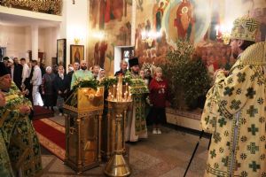 Богослужебные песнопения исполнил Митрополичий хор Покровского собора под управлением регента Елены Левада.