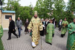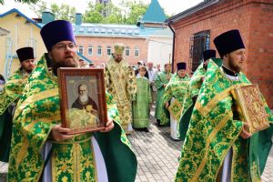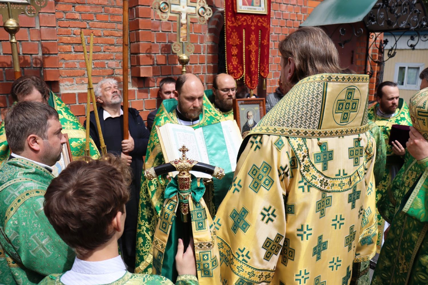По заамвонной молитве глава Приморской митрополии возглавил праздничный крестный ход вокруг храма с чтением Святого Евангелия и окроплением верующих святой водой, после которого вознес молитву ко святому праведному Иоанну Кронштадскому, затем были пропеты величания Господу нашему Иисусу Христу в честь праздника Пятидесятницы и святому праведному Иоанну Кронштадскому.