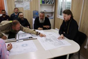 После совещания глава Приморской митрополии в сопровождении руководителей подрядных организаций осмотрел строительную площадку.