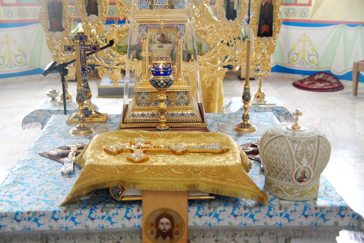 На сугубой ектение архипастыри вознесли молитвы ко Господу о восстановлении мира и о завершении строительства Спасо-Преображенского кафедрального собора г. Владивостока.