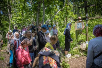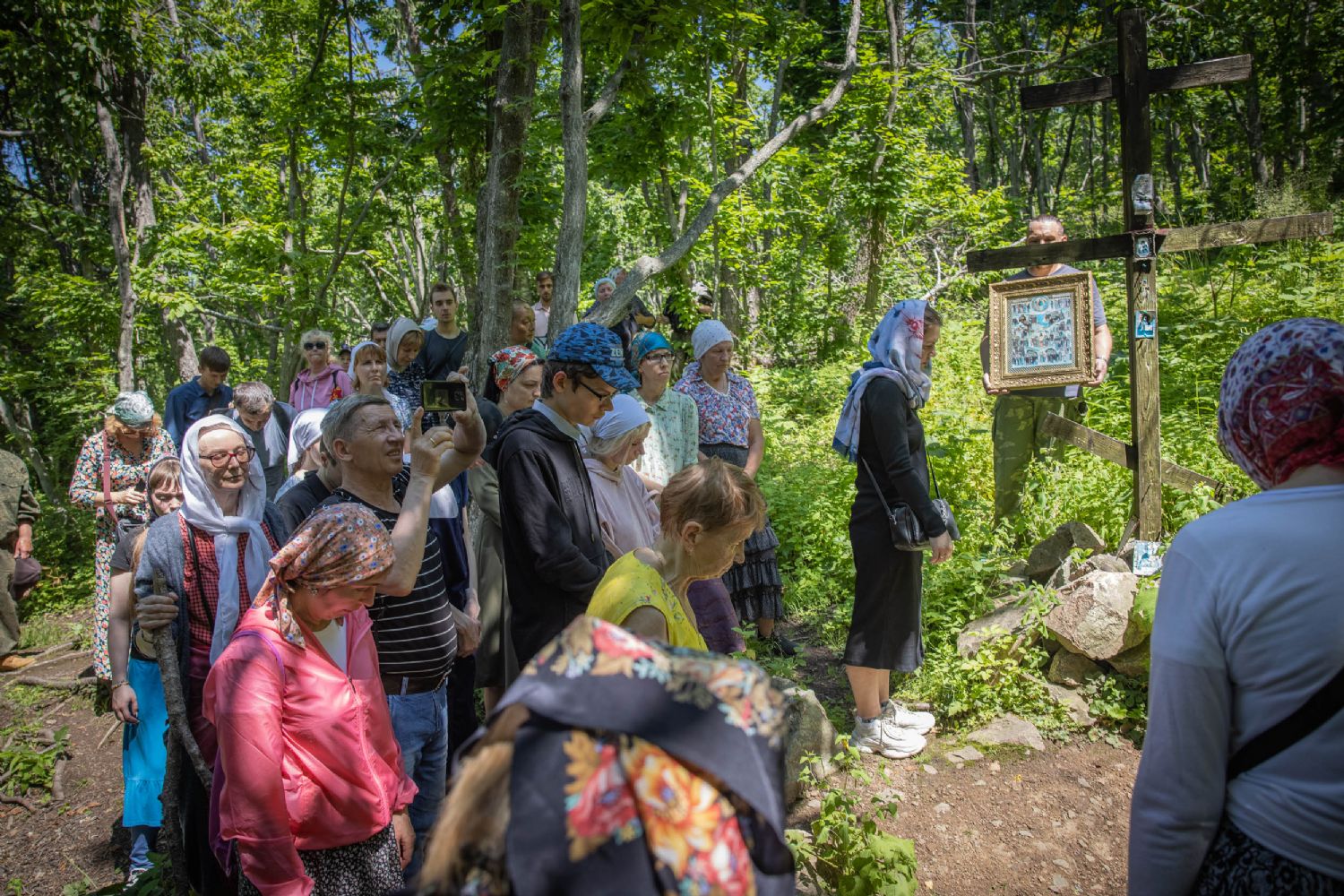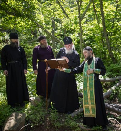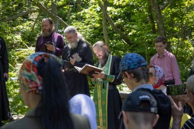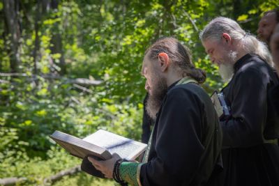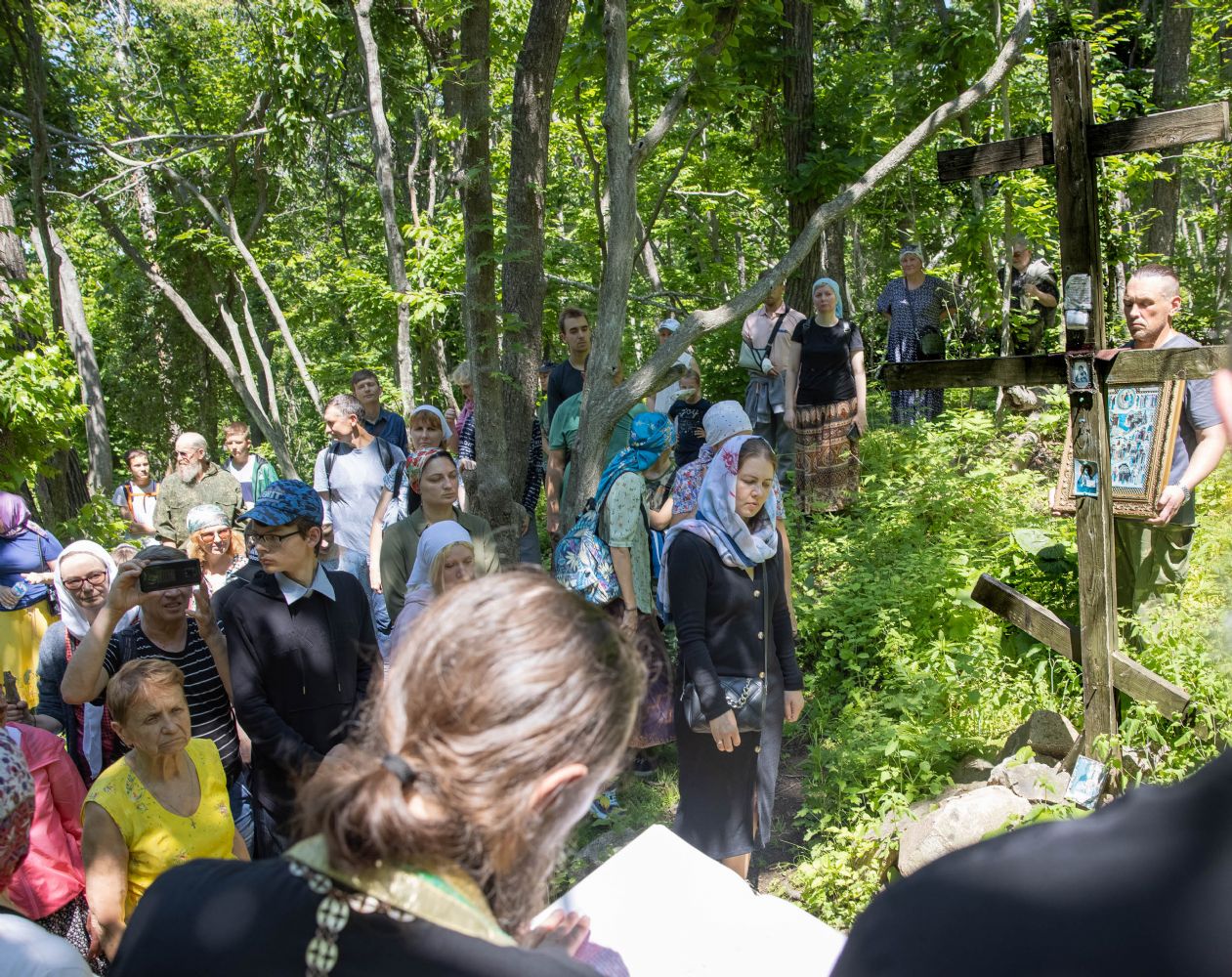 После воскресной литургии братья обители, прихожане и паломники совершили крестный ход на вершину острова с пением молебна Всем святым Русской земли. Молебное пение начали в монастыре, продолжили во время восхождения. На середине пути сделали остановку на источнике, рядом с которым братьями монастыря 15 лет назад был установлен поклонный крест. На главной вершине острова, горе Русских, завершили пение молебна. Наместник монастыря игумен Климент (Кривоносов) прочитал молитву Всем святым Русской земли и осенил праздничной иконой окрестность.