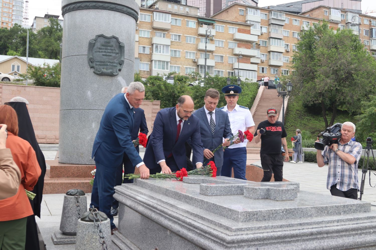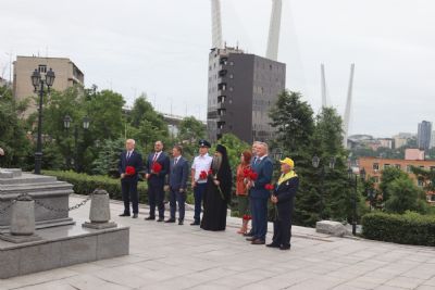 В церемонии возложения цветов участвовали глава города Владивостока Константин Шестаков, председатель Думы города Владивостока Андрей Брик, главный федеральный инспектор по Приморскому краю Сергей Грызыхин, общественные деятели, военнослужащие, горожане и гости города.