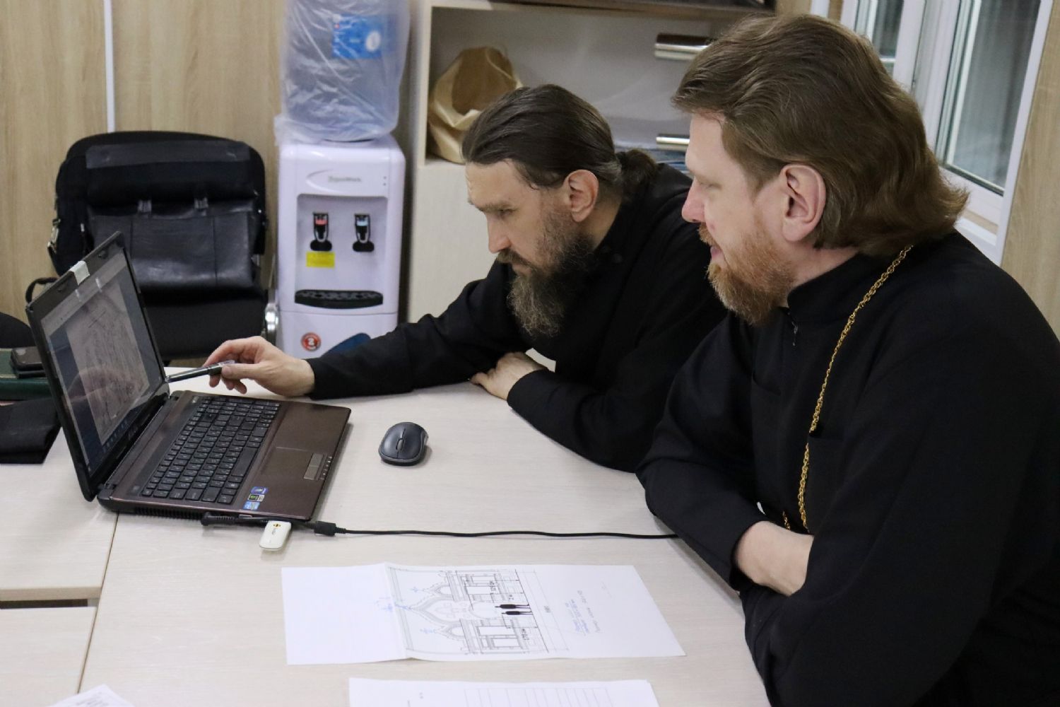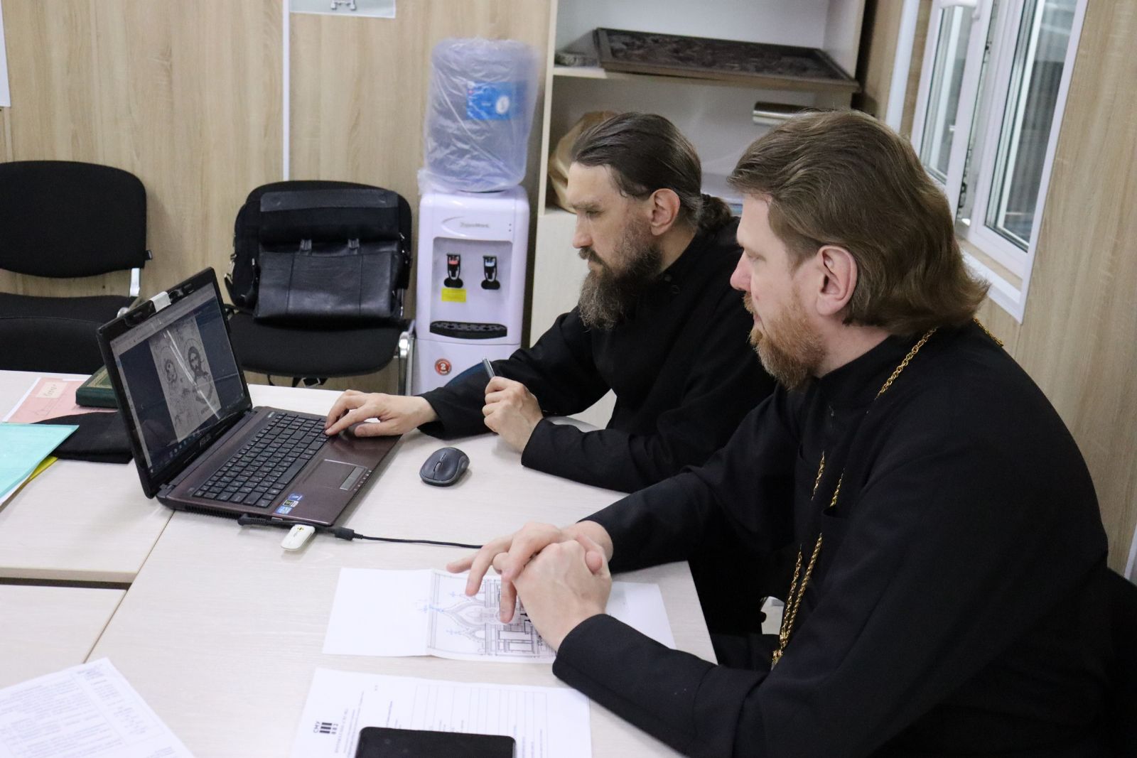 В ходе совещания были рассмотрены эскизы образов храмовых икон святого благоверного великого князя Александра Невского, святой великомученицы Екатерины и святых Царственных Страстотерпцев.