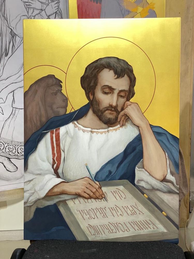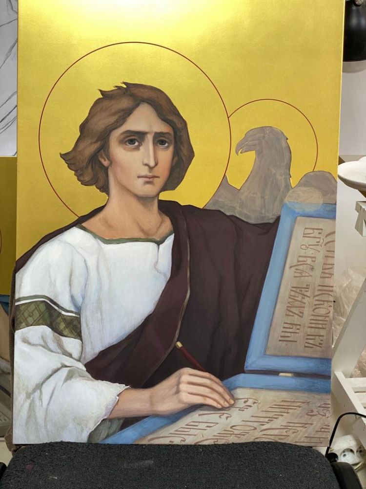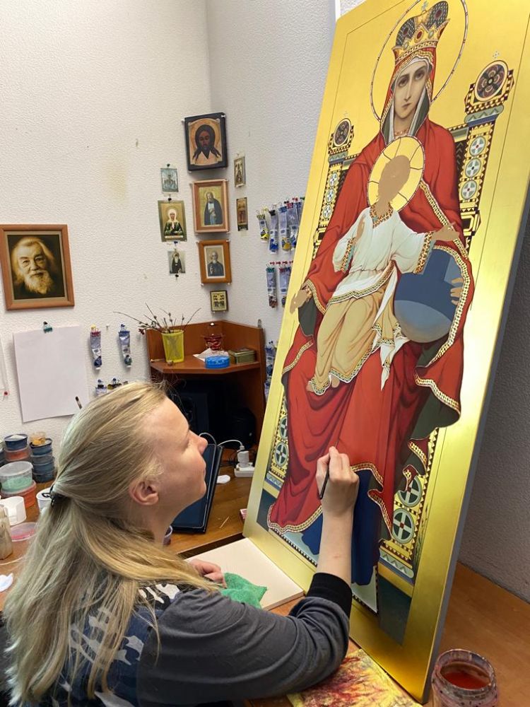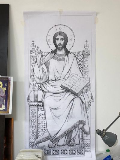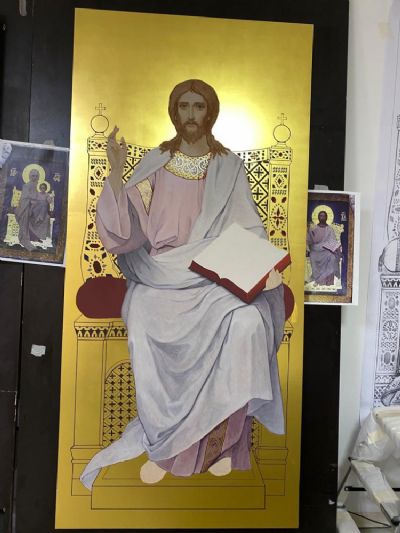 Продолжается планомерная работа по согласованию эскизов. Те иконы, эскизы которых прошли полное согласование композиционных и стилистических решений, уже выполняются иконописцами. В режиме видеосвязи художники-иконописцы мастерской показали текущий ход работ по написанию икон. В настоящий момент одновременно идет написание нескольких икон для иконостаса и для северного придела.