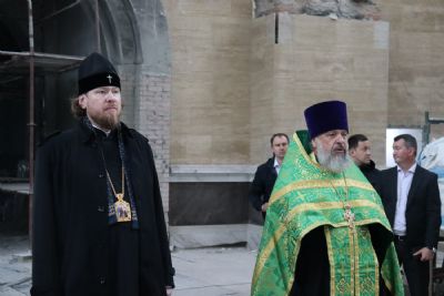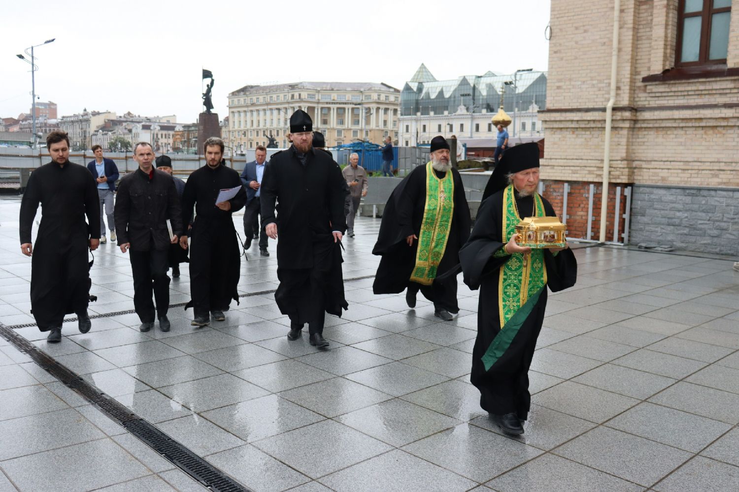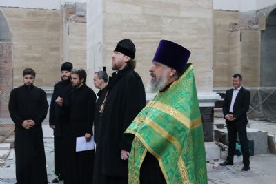 В завершение молебного пения был совершен крестный ход с ковчегом вокруг строящегося собора.